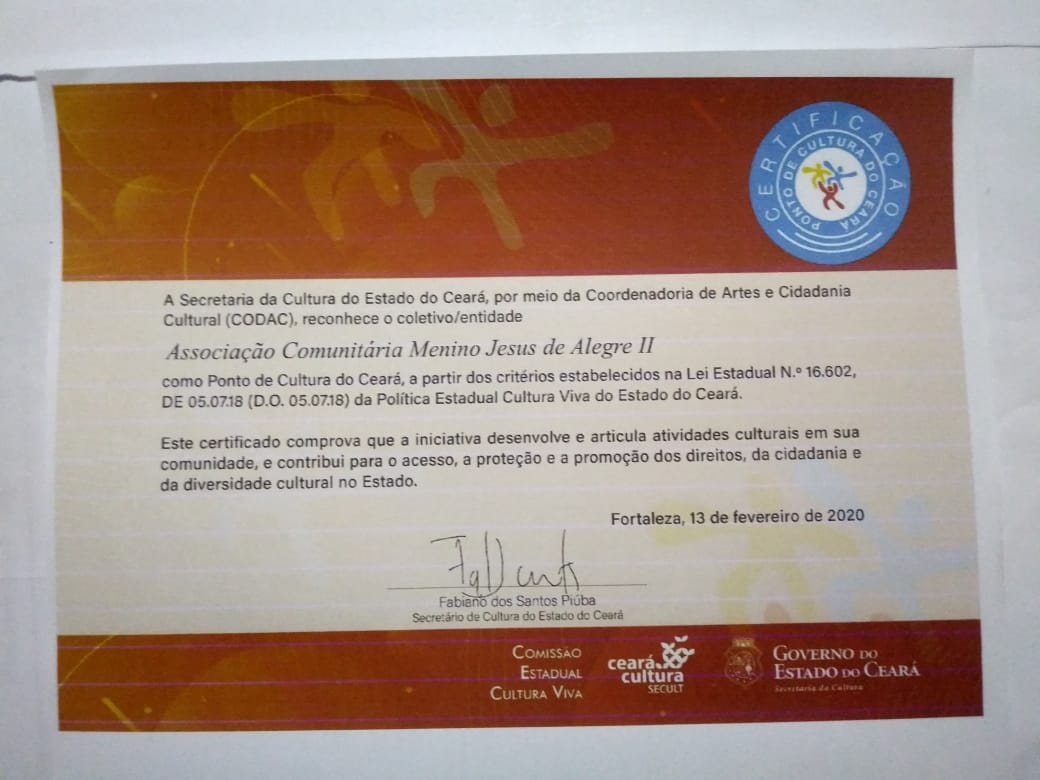A Associação Menino Jesus de Alegre II é reconhecida por ter desempenhado um papel fundamental na preservação das tradições culturais da região, mantendo viva a identidade local. Seus cursos e oficinas têm capacitado os membros da comunidade, permitindo que desenvolvam habilidades artísticas e profissionais que beneficiam suas vidas e o desenvolvimento local. Os eventos organizados pela associação têm atraído públicos diversos, promovendo a integração social, o turismo cultural e fortalecendo o senso de pertencimento. Sua atuação na promoção da inclusão e acessibilidade tem sido um exemplo a ser seguido, contribuindo para uma comunidade mais justa e consciente das necessidades de todos os seus membros. A Associação Comunitária Menino Jesus de Alegre II, ao longo de mais de duas décadas, construiu um legado de dedicação à cultura, educação e desenvolvimento da comunidade local. Seu histórico de realizações e experiência a coloca como uma instituição essencial na promoção da cultura popular e no fortalecimento do espírito comunitário em Itatira e região.Cursos e Capacitações: Desde sua fundação, a Associação Menino Jesus de Alegre II vem promovendo uma variedade de cursos e capacitações, incluindo oficinas de artesanato, dança, música, teatro, culinária e outras expressões culturais. Esses cursos visam não apenas preservar as tradições locais, mas também capacitar os membros da comunidade, proporcionando-lhes habilidades práticas e oportunidades de geração de renda.