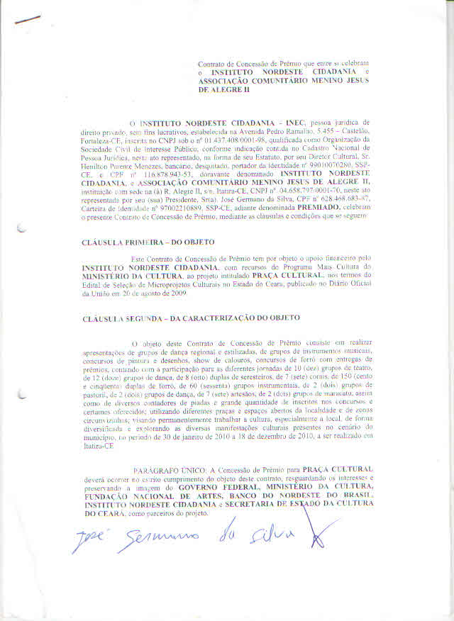 ASSOCIAÇÃO COMUNITÁRIA MENINO JESUS DE ALEGRE II/ PONTO DE CULTURA BOI CATINGUEIRO