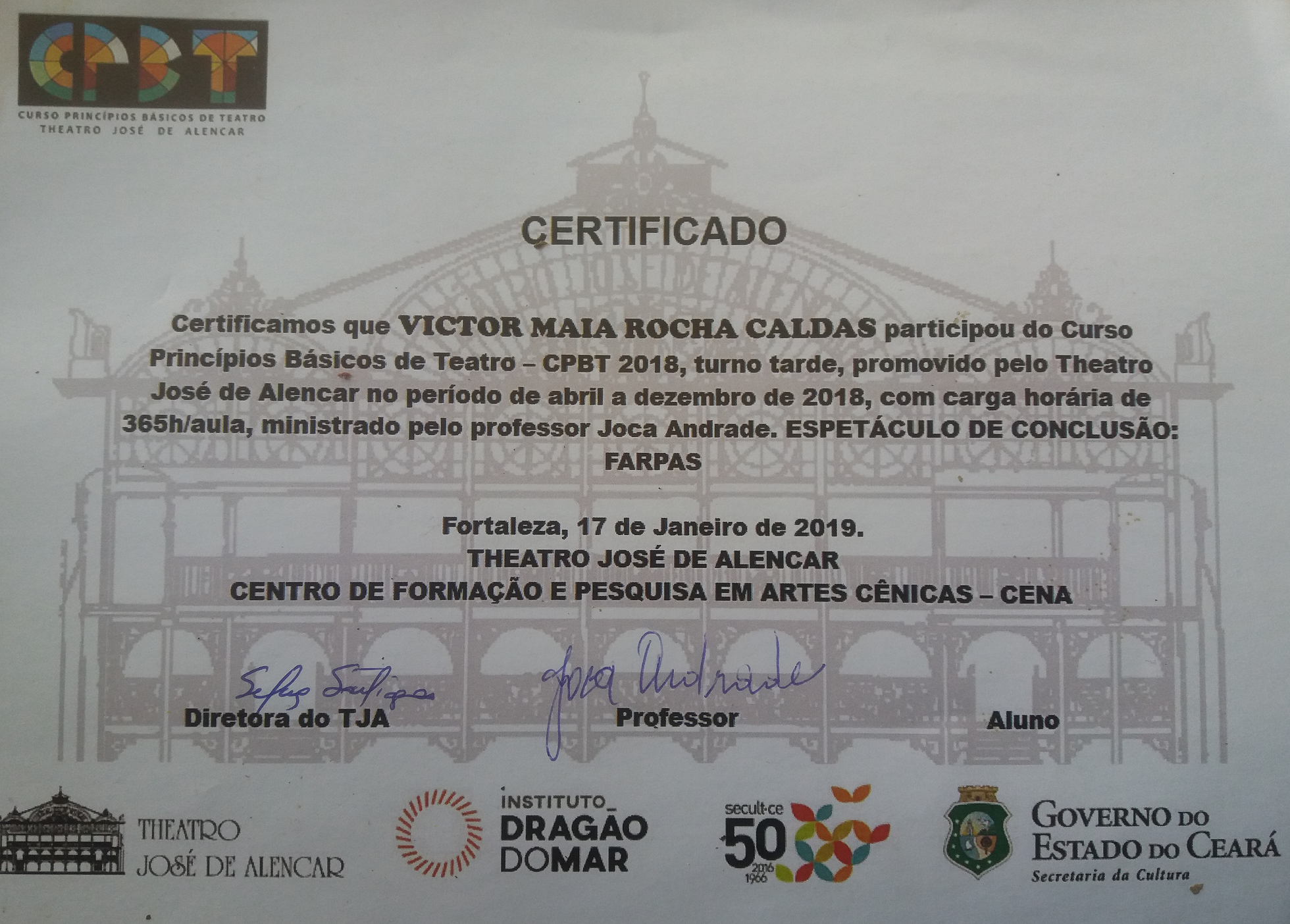 * Curso Princípios Básicos de Teatro - Theatro José de Alencar (2018)