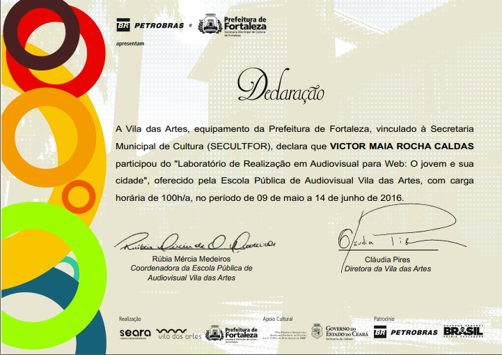 * Laboratório de Realização em Audiovisual para WEB - Vila das Artes (2016)