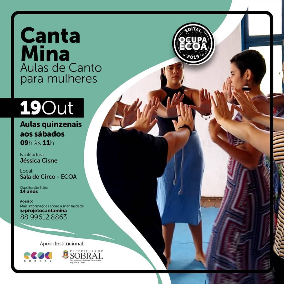 Coletivo Área de Atuação Música Funções Descrição curta Canta Mina é um projeto de aulas de canto, voltado para mulheres criado em 2019. Atualmente é ministrado pelas professoras Jéssica Cisne e Letícia Muniz. O projeto já conta com cinco turmas, que acontecem de forma online durante a pandemia. Site: https://instagram.com/projetocantamina Sobre Responsáveis Agenda Galeria eventos entre e Baixar Planilha Denunciar Contato Nome: E-mail: Tipo: Mensagem: Denúncia anônima Receber cópia da denúncia Cancelar Enviar Denúncia Enviando mensagem Nome: E-mail: Tipo: Mensagem: Mensagem anônima Enviar somente para o Responsável Receber cópia da mensagem Cancelar Enviar mensagem Enviando mensagem