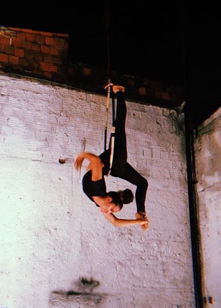 Beatriz Barros artista circense em lira acrobática e acrobacia solo, integrante do coletivo circense Os Desunerados.