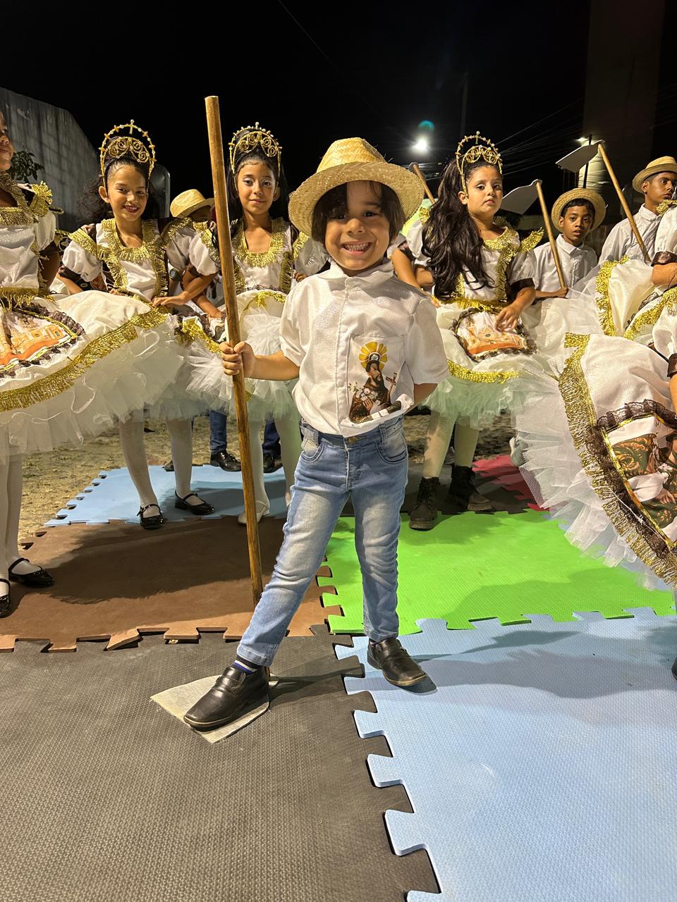 Entrei no Grupo como batuqueiro e produção em 2019. Participei da produção do espetáculo “CRIANÇA PINTA, BORDA E DANÇA” que retrata as danças populares do Brasil.