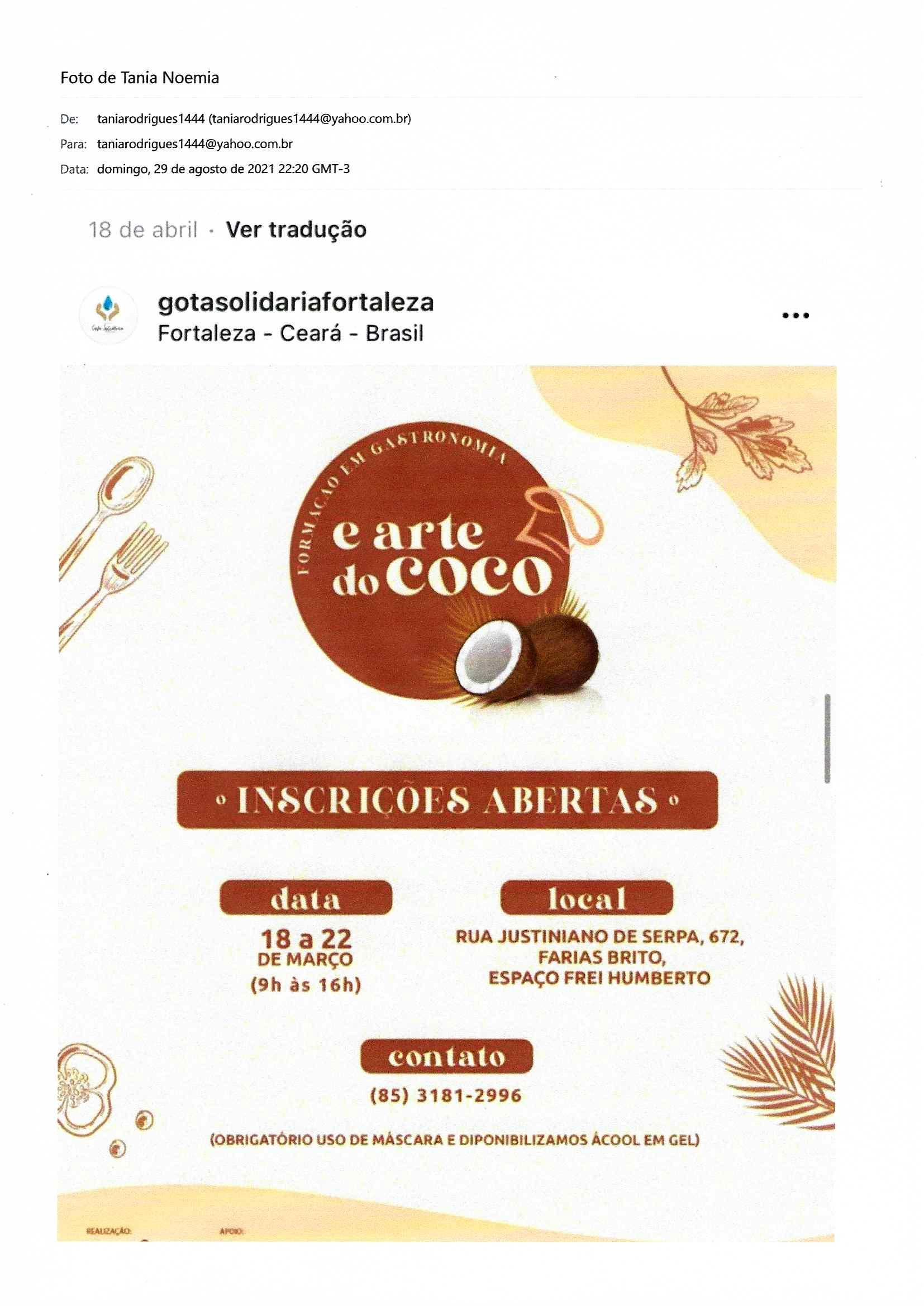 2019 Parceira com a SECULTFOR - Participação no projeto “Ateliê de artes: pense, experimente e crie um Tie Dye diferente” com a participação dos idosos;