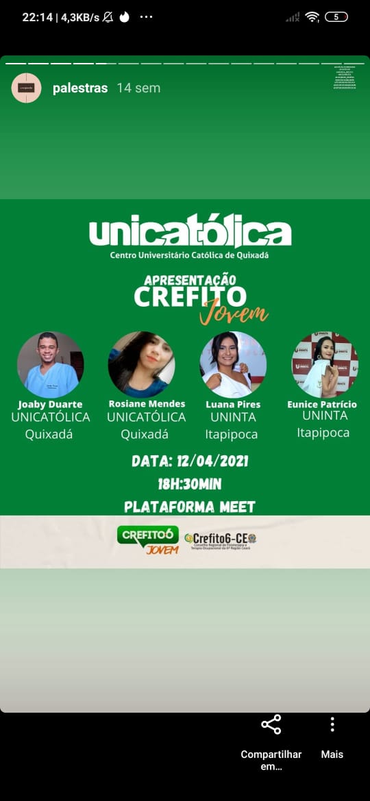*Membro do Centro academico de fisioterapia do Centro Universitário Catolica de Quixadá.