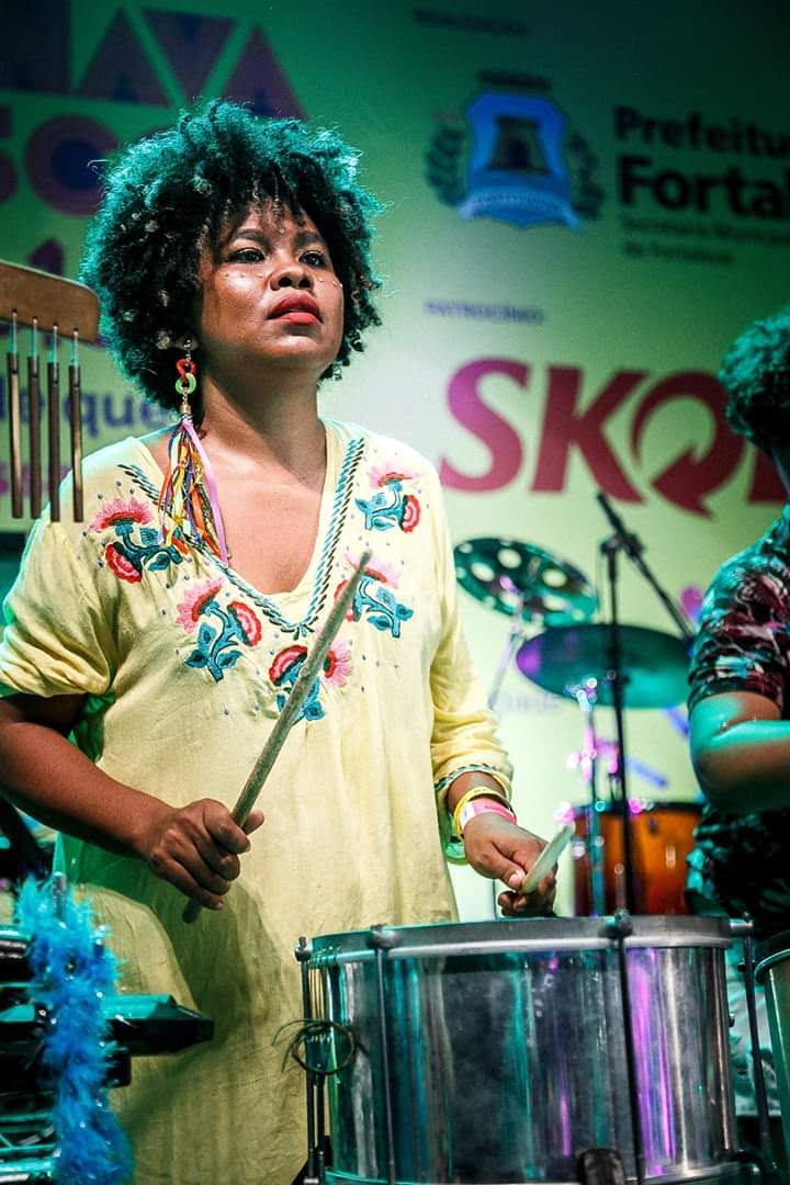 Musicista percussionista desde 2007 iniciou atividades na área da música através de projetos sociais no Conjunto Palmeiras. Estudou ritmos, luthieria e produção musical ao longo de sua formação profissional. Atuou e atua como percussionista em diversas bandas locais; Companhia Bate Palmas, Samba delas, Samba da Vadiagem, Samba de Rosas, Oco do mundo entre outras.• Fundadora/Articuladora e professora de percussão do grupo Batuque de Mulher.