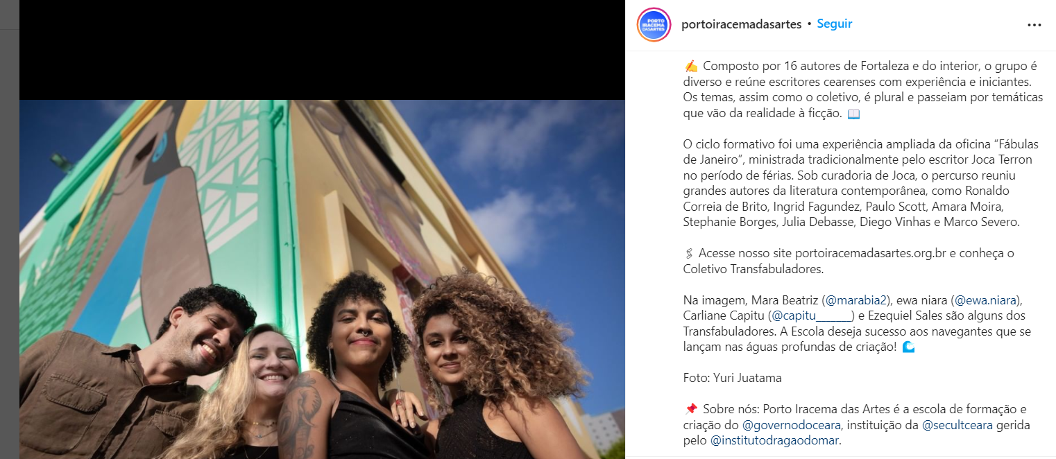 É integrante do coletivo de literatura Transfabuladores e do Sarau da Taíba.