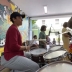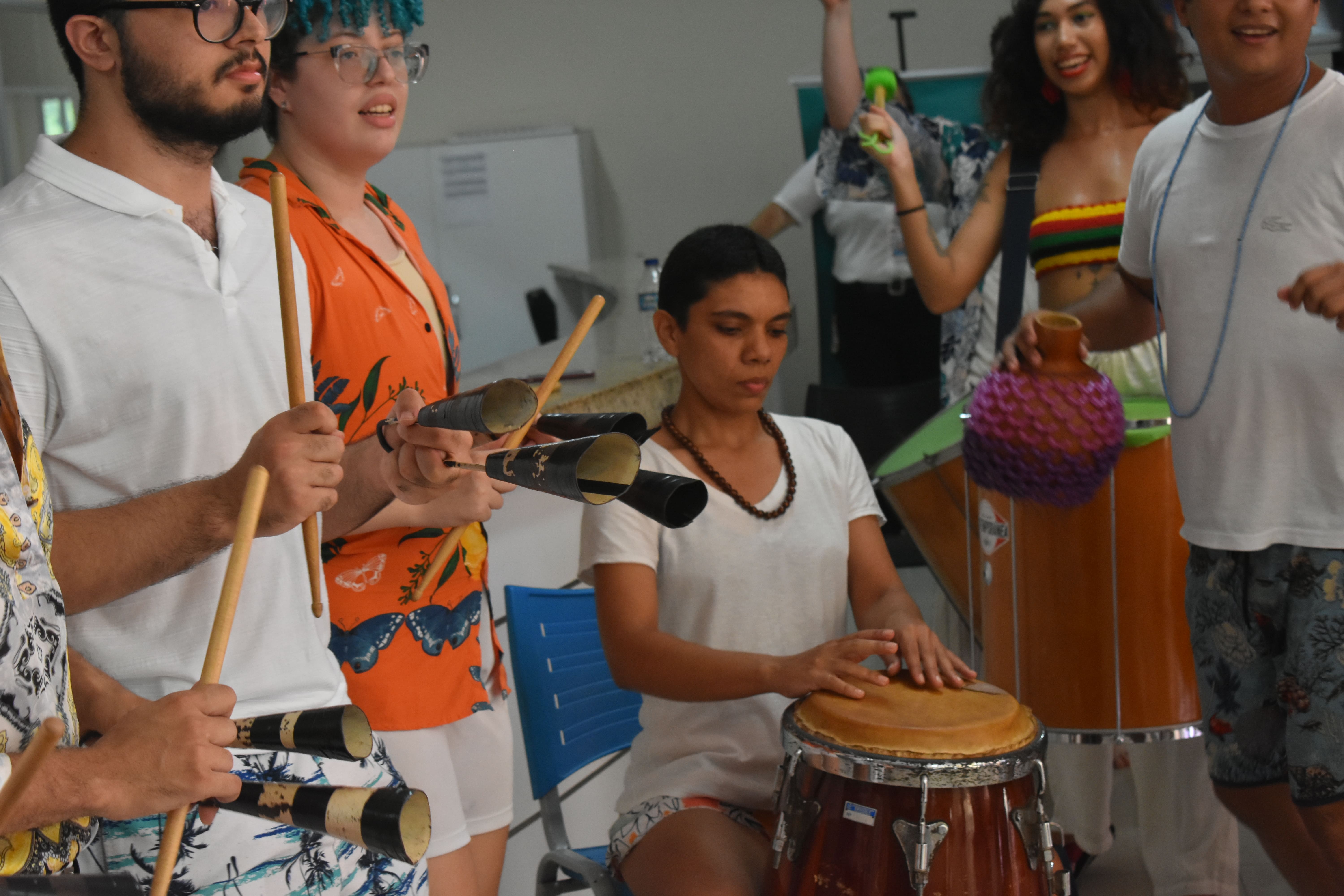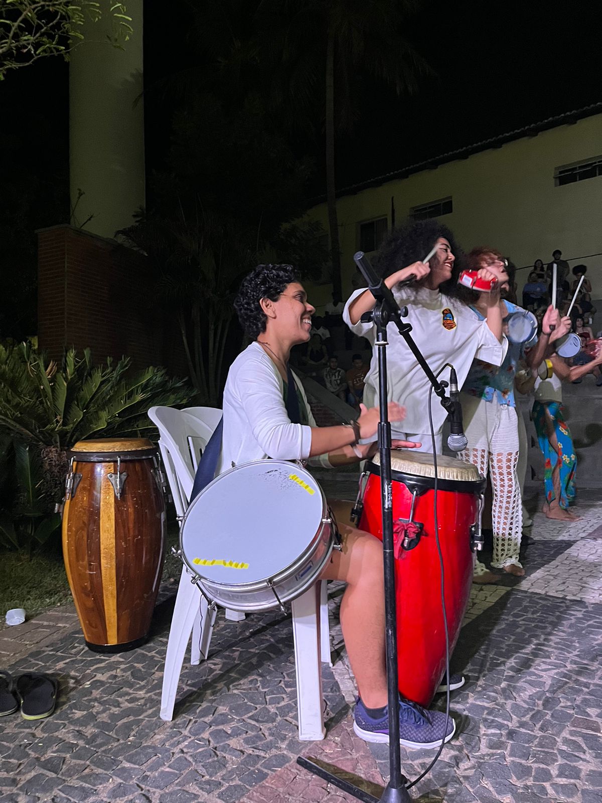 É percussionista, professora de danças sociais a dois e artista colaboradora em processos de artistas e coletivos independentes.