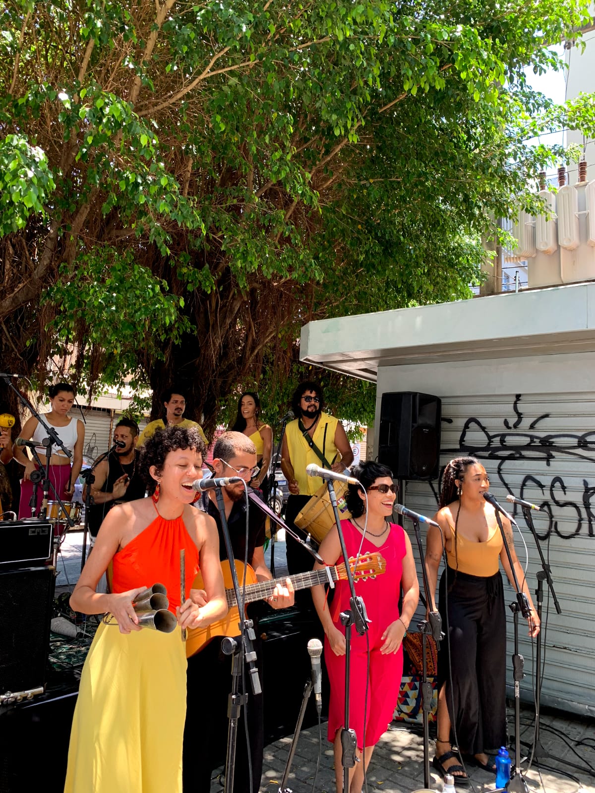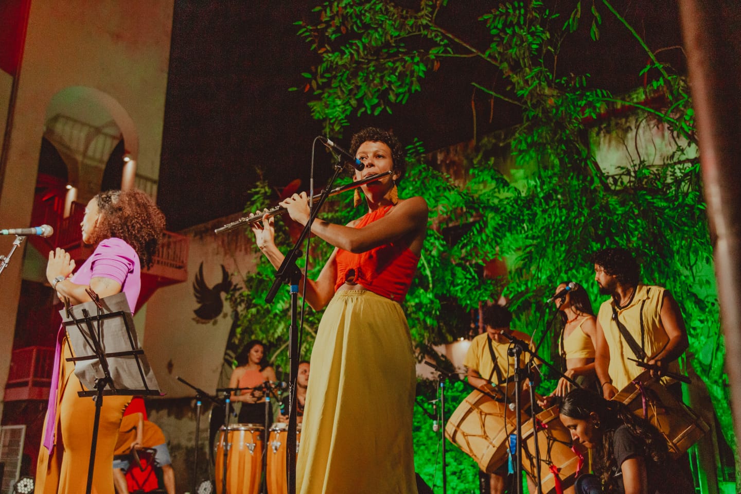 2017 - Orquestra Solar de tambores no fechamento do show espetáculo de lançamento do livro-CDs "Maracatus, Afoxés, Coroações, Rezas e outros Batuques - Inês Mapurunga" - Ana Paula Oliveira está presente no naipe das alfaias