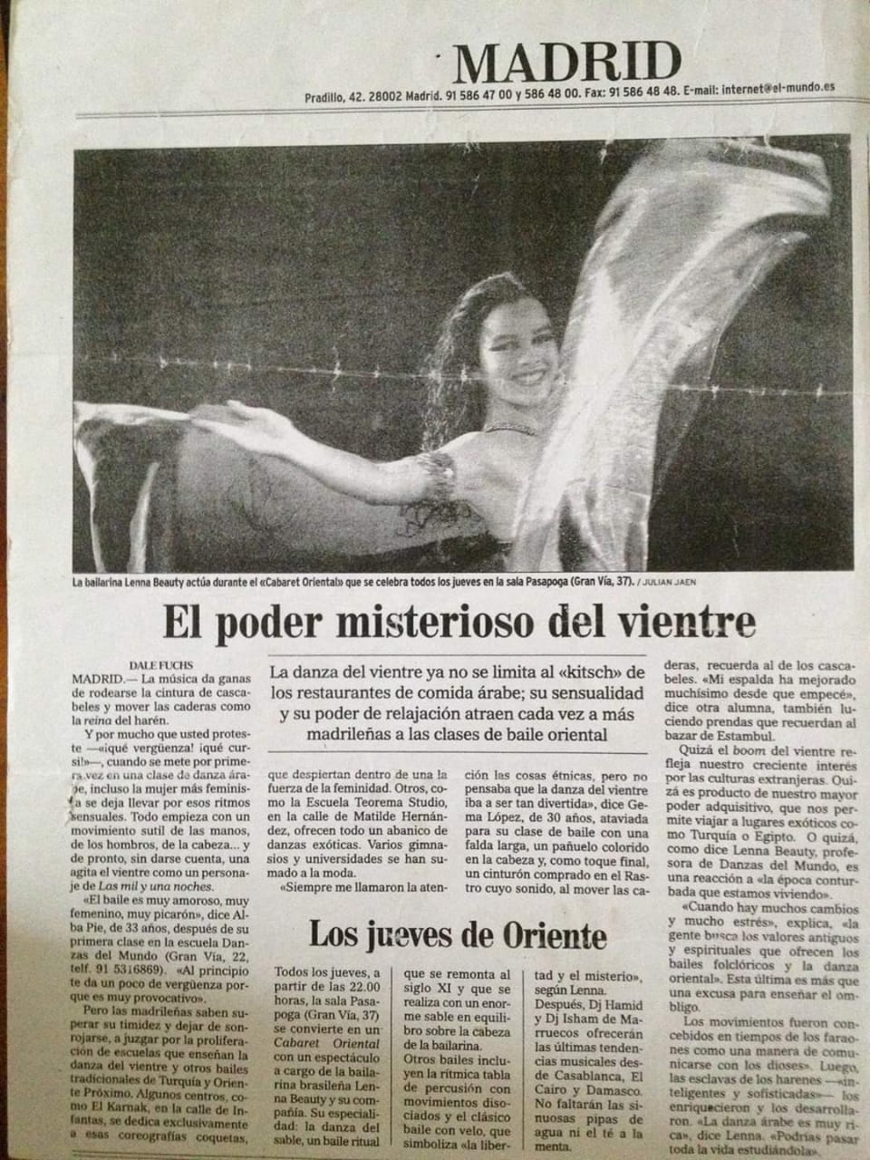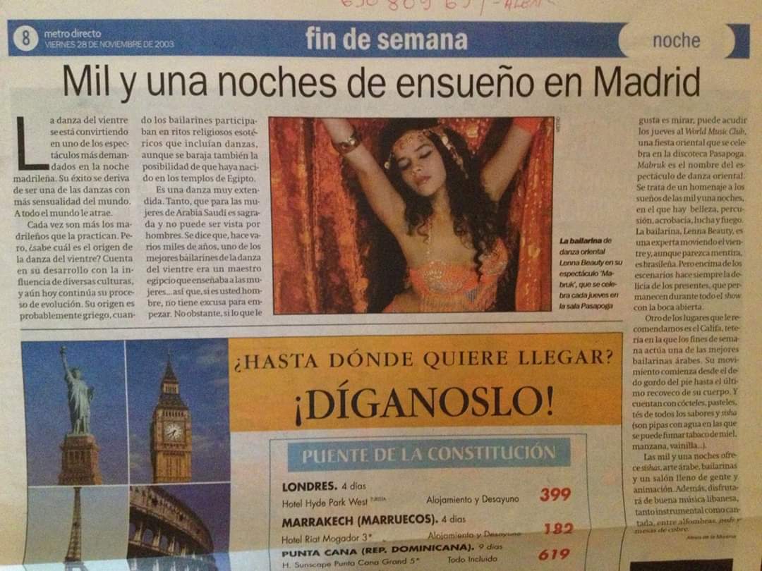 Como solista de Oriental, dançou por várias cidades de Espanha e Oriente Médio. Fundou sua primeria companhia de dança, Mabruk, em Madrid no ano 2000. Em seguida entrou para a companhia internacional de origem Israelita Mayumana, com a qual esteve vários anos em tour por alguns dos melhores teatros do mundo, viajado por mais de 20 países.