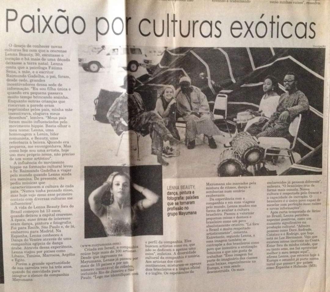 Lenna Beauty Gadelha é bailarina, percussionista e artista visual. Possui uma ampla formação em dança, havendo estudado com os melhores mestres do mundo em dança Árabe (Shokry Mohamed, Fádua Chuffi, Mahmoud Reda e Rakia Hassam) e Flamenco (Merche Esmeralda e Maria Magdalena, seguidas de várias outras mestras como Carmela Greco, La Tati, La Truco).É uma apaixonada pesquisadora das danças étnicas e da cultura cigana, buscando sempre o conhecimento em sua fonte original. Sua formação também inclui outras modalidades como Yoga Ashtanga, Pilates, Gypsie Dance, Body percussion e Percussão Árabe Clássica. Durante 12 anos viveu em Madrid, entre esse período, também morou na Holanda, Bélgica, Turquia e Israel.