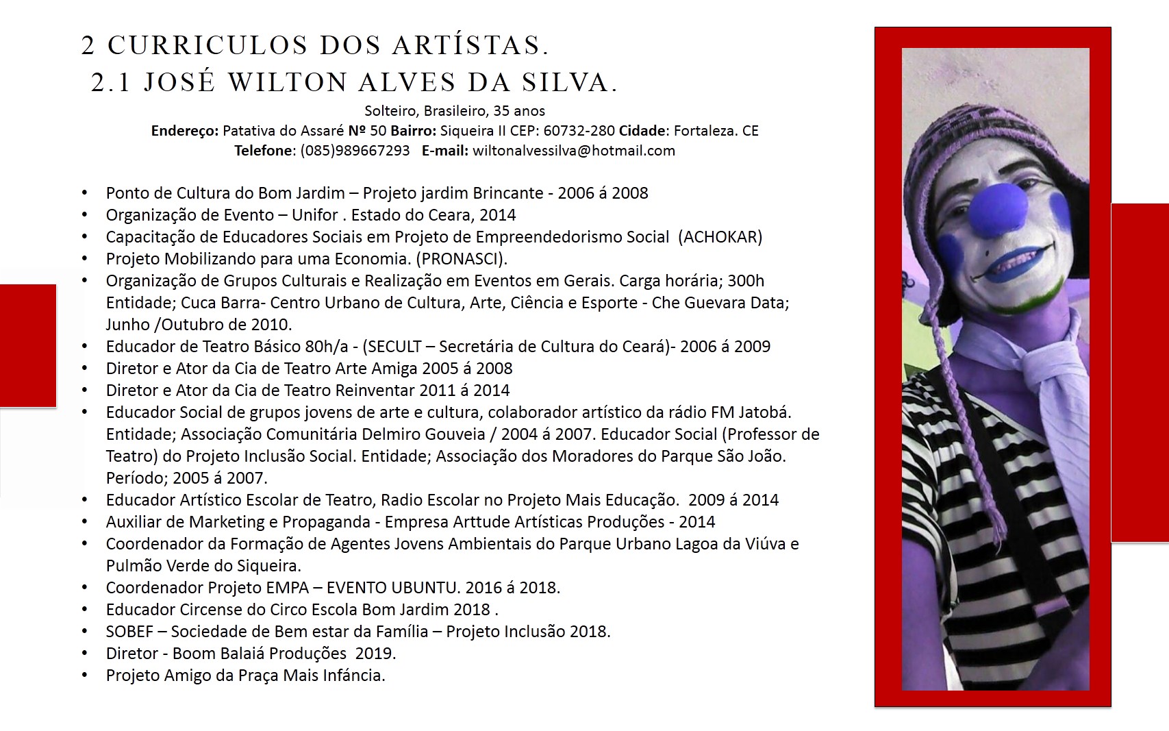 Palhaço Jeca e suas andanças ...