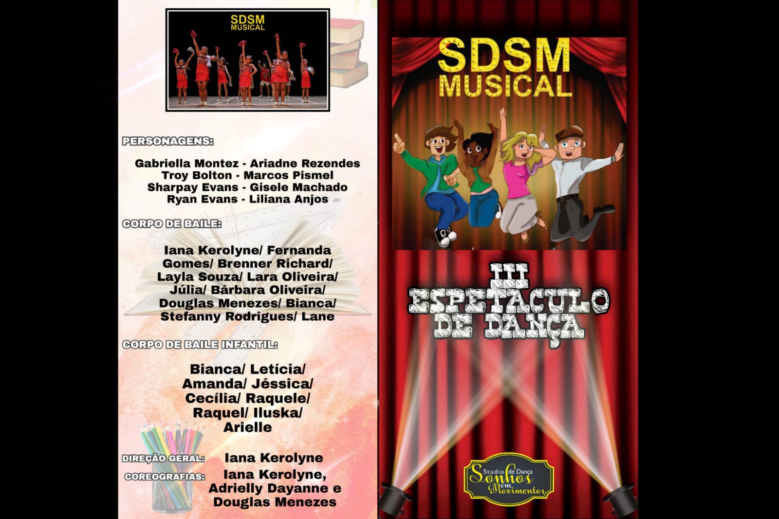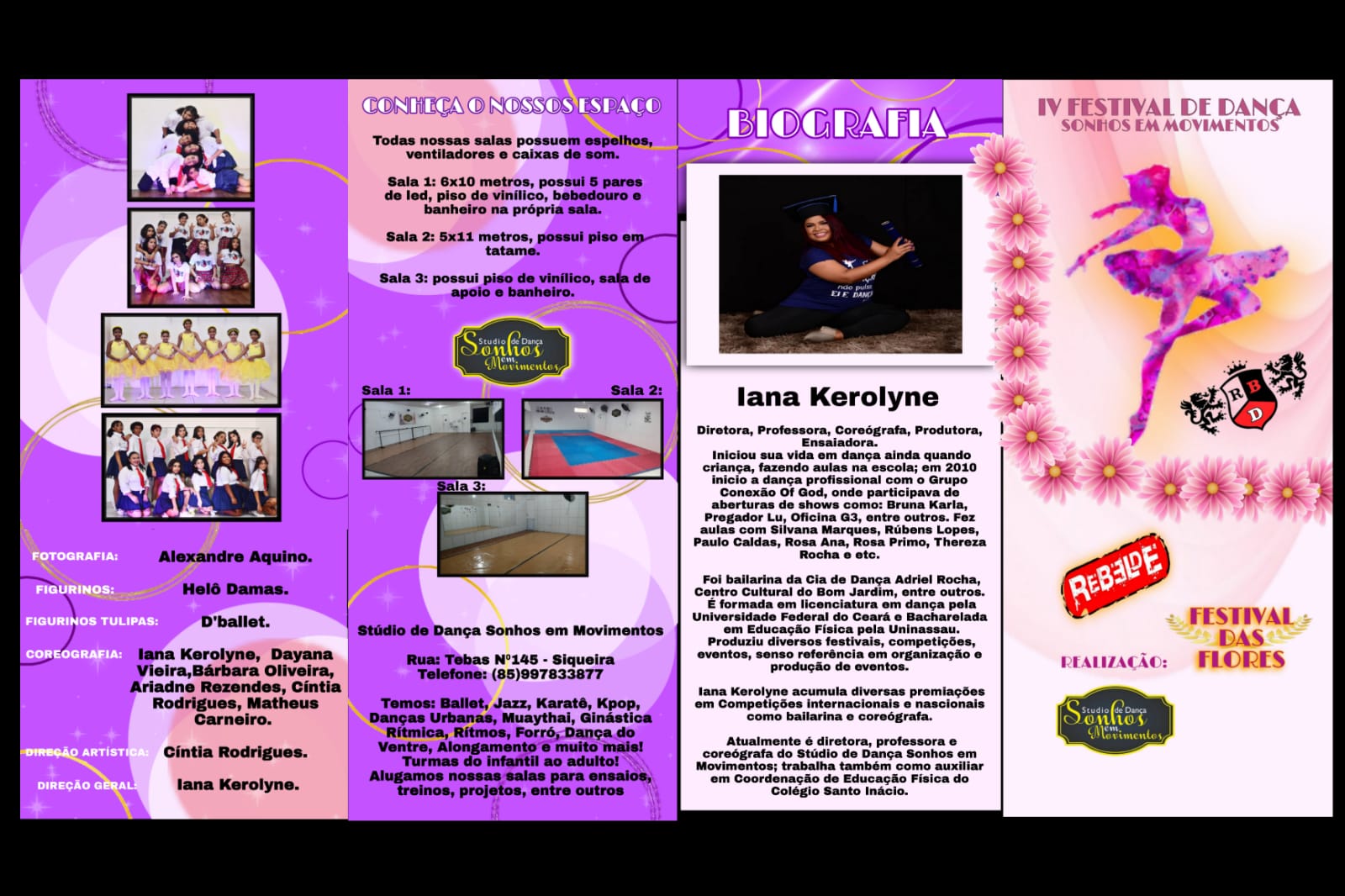 Coreógrafa, diretora do Studio de Dança Sonhos em Movimentos, professora do Colégio Vida Viva, Colégio Padre Josimo como professora de Ballet e Jazz Dance, estudante de dança UFC.Idealizado por IANA KEROLYNE MATOS DA SILVA, o Studio de Dança Sonhos em Movimentos.