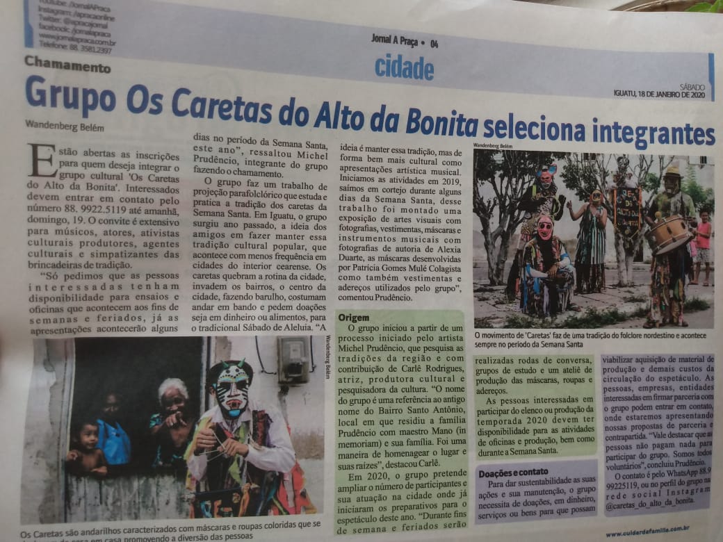 Pesquisa há 5 anos sobre as tradições dos Caretas da Semana Santa da região Centro Sul.