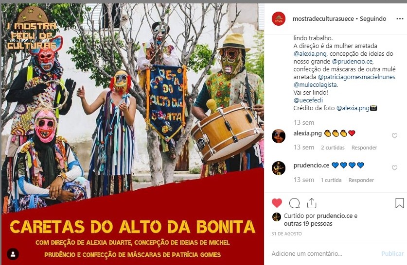 Em 2018, iniciou pesquisas sobre a tradição dos Caretas da Semana Santa do região Centro Sul do Ceará, produzindo e dirigindo um documentário do grupo "Caretas do Alto da Bonita", de Iguatu/CE. Seguindo em sua pesquisa, desenvolveu a exposição fotográfica e o filme "Sertão Mascarado", com os caretas da cidade de Umari.