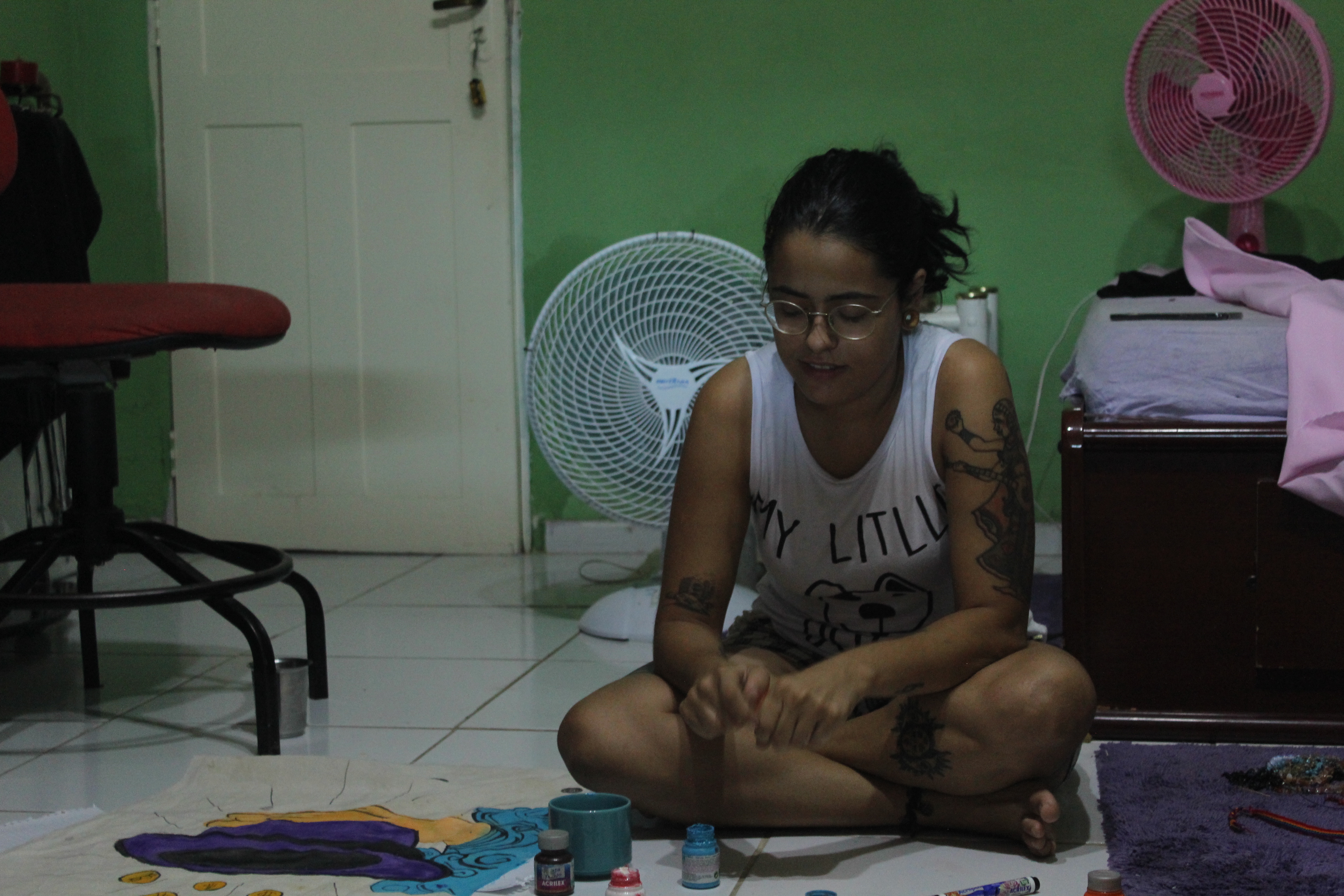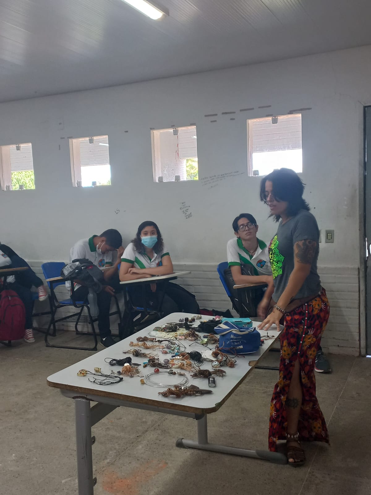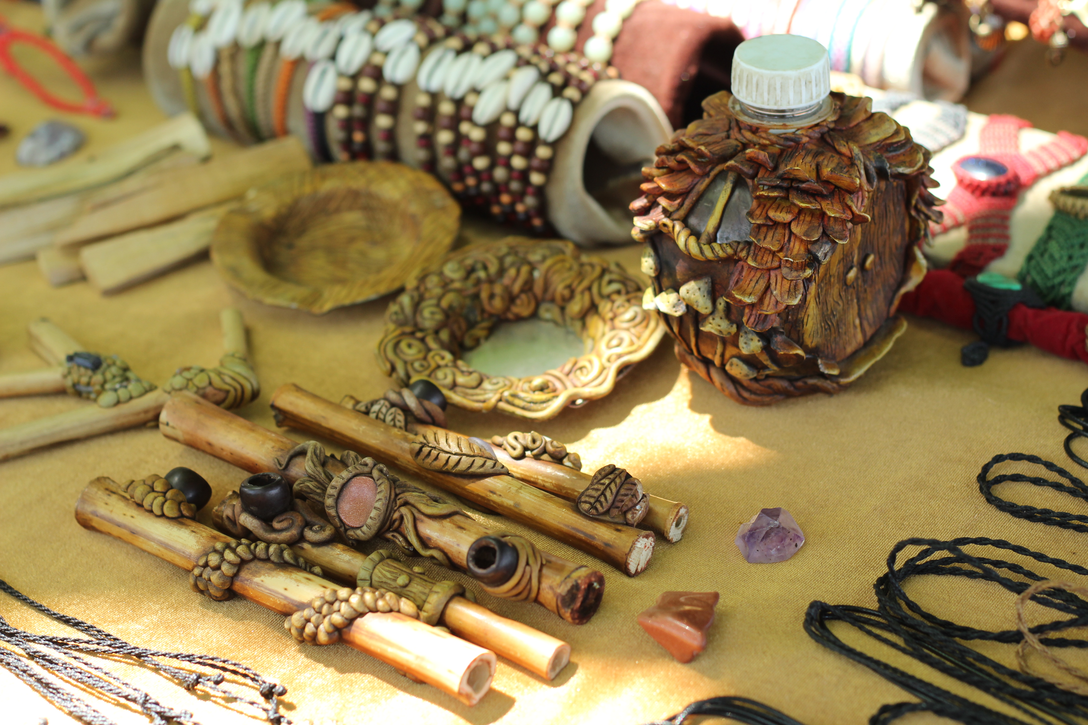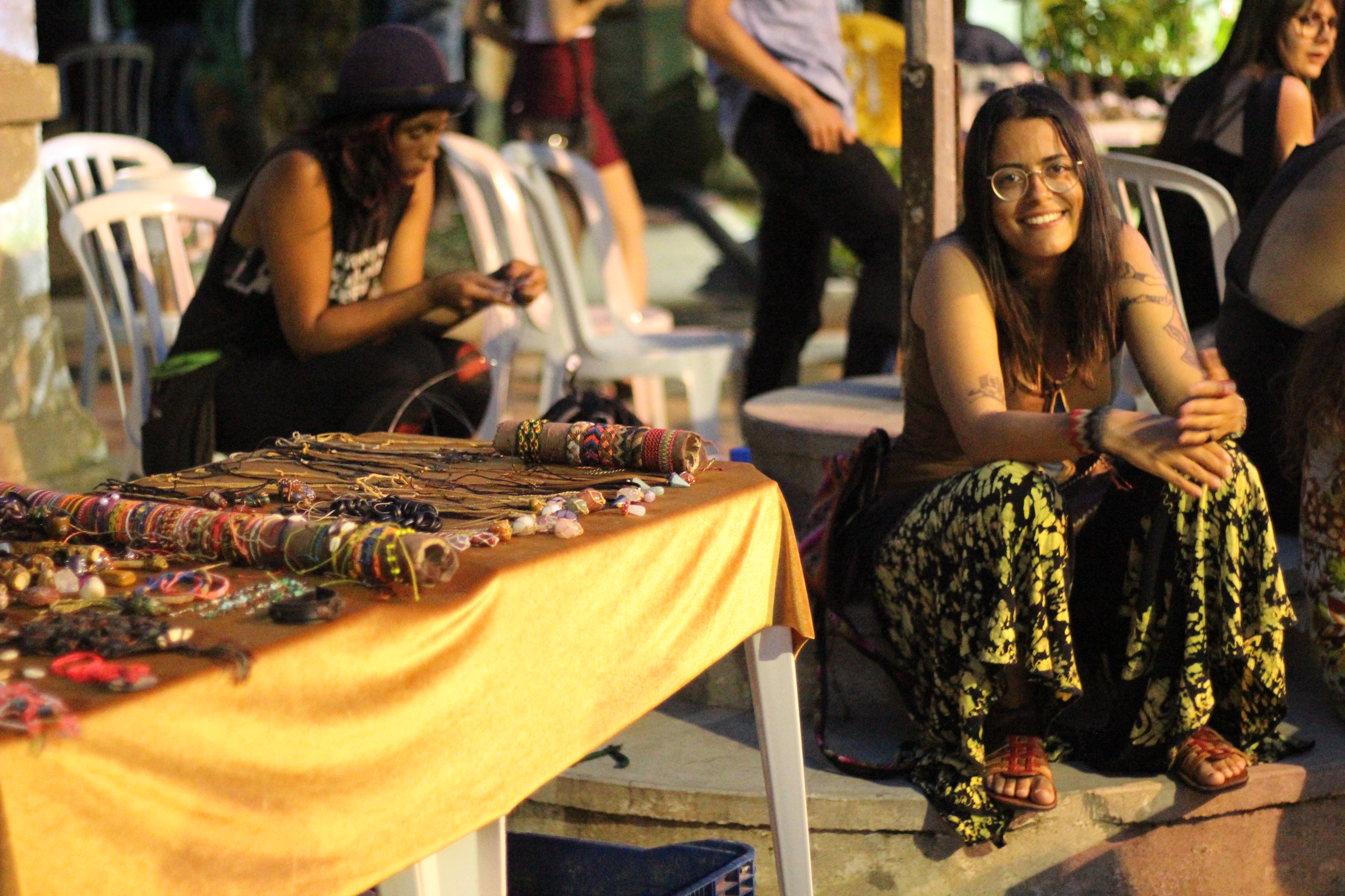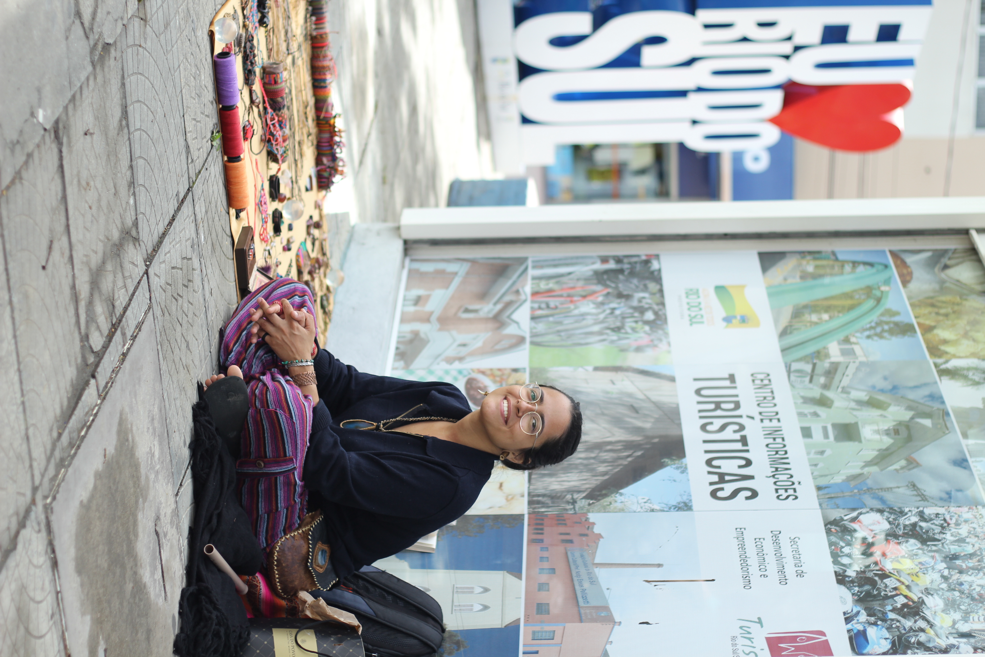 Mochileira e artesã, viajou o Brasil expondo na rua, misturando técnicas como macramé, escultura produção de colares, pulseiras, etc