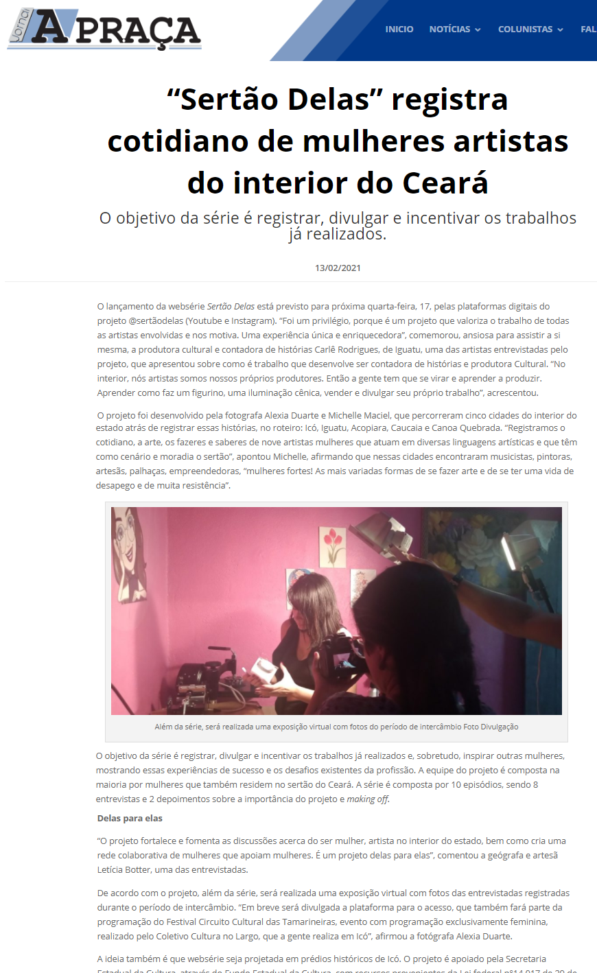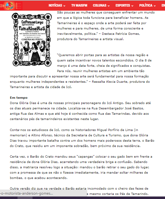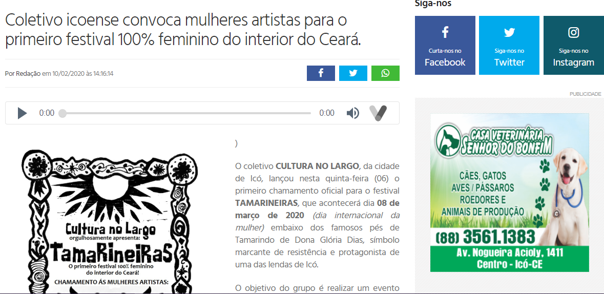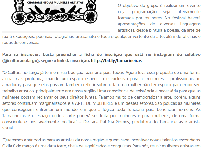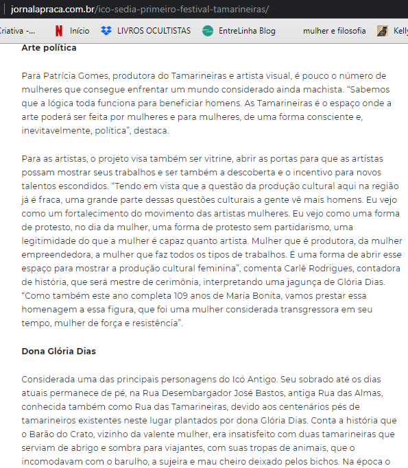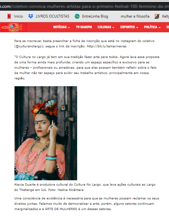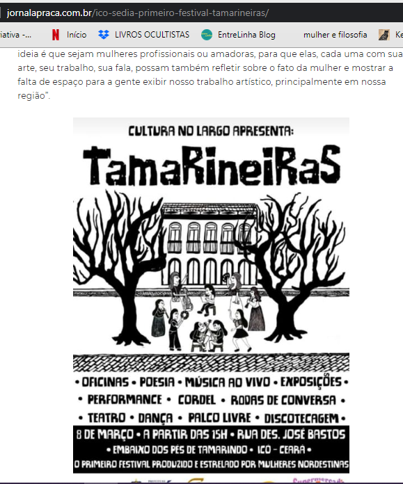 Em 2020, idealizou e produziu o Festival Tamarineiras, o primeiro festival com programação e produção 100% feminina no interior do Ceará, que contou com mais de 100 mulheres nordestinas em suas cinco edições.