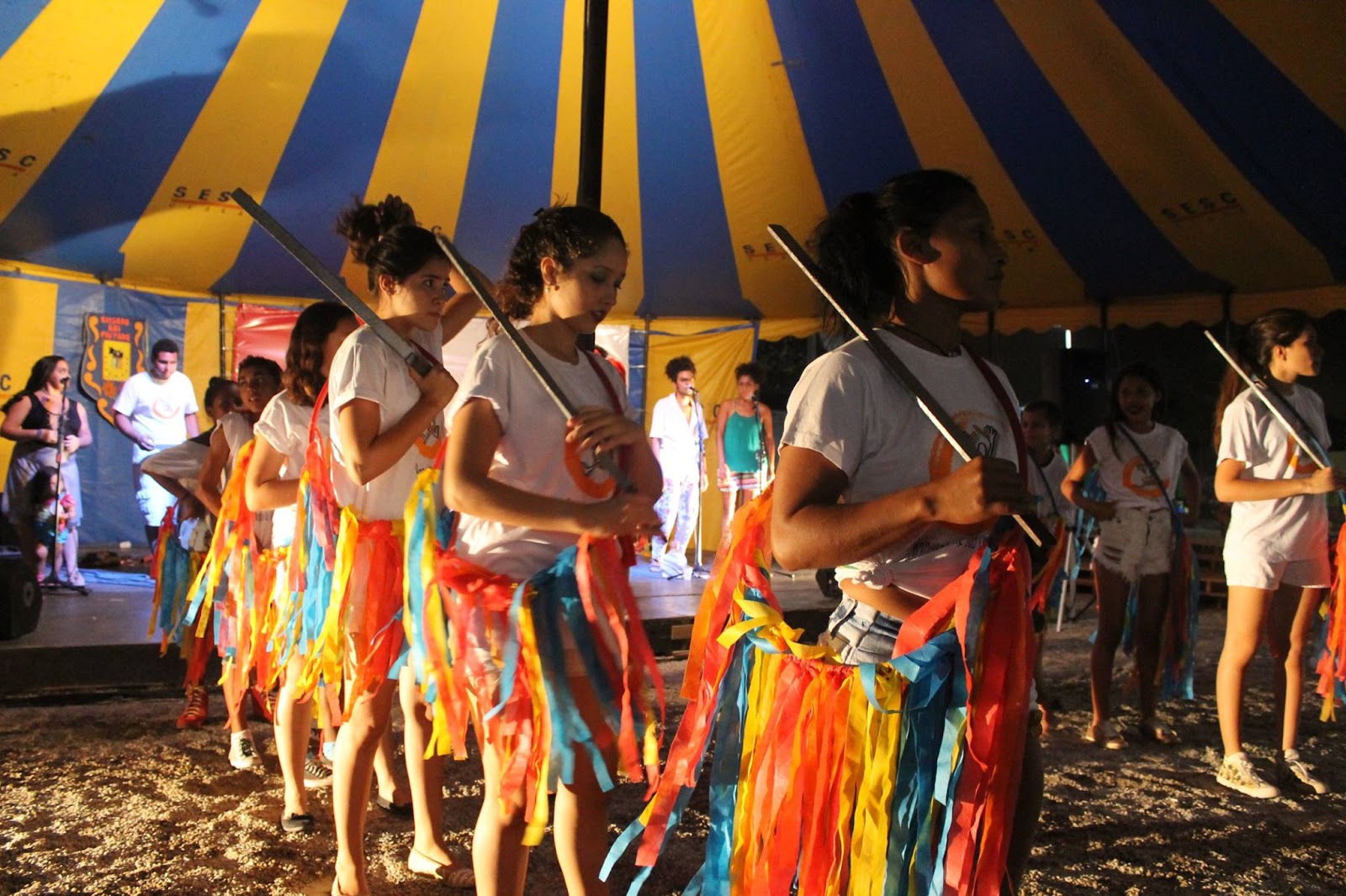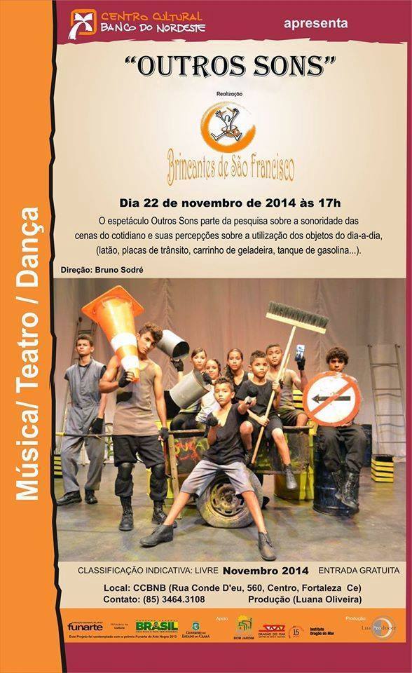 em 2014 estreio o primeiro espetáculo como resultado da pesquisa chamado Outro Sons, em 2016 estreio Sonoridades Urbanas atualmente está em processo de pesquisa para o esétaculo " Um Labirinto em cada pé". atualmente esta no processo de remontagem da brincadeira do Boi Jardim que realizamos desde 2012 e que por motivos de mudança de sede paramos de realizar