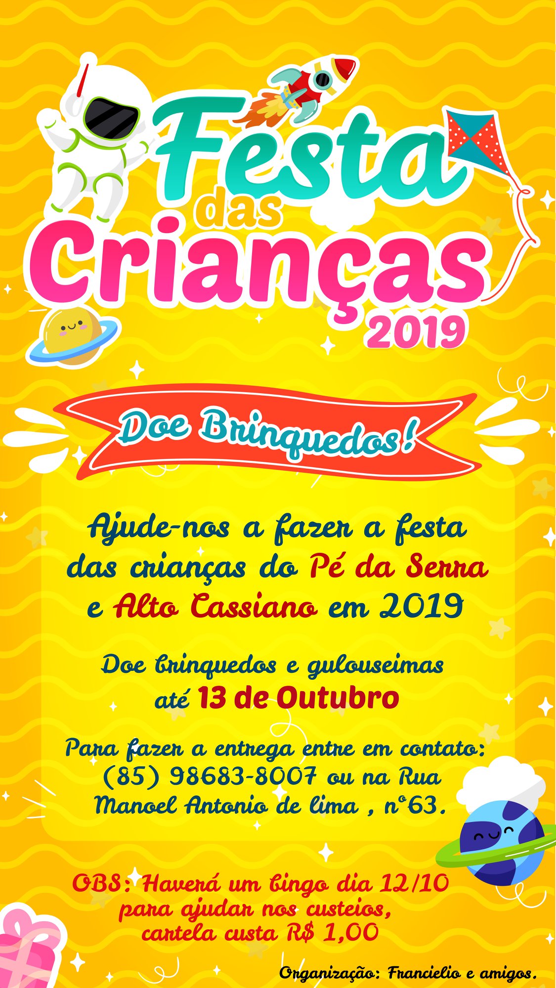 • Responsável pela Festa das Crianças do Pé da Serra 2018/2023