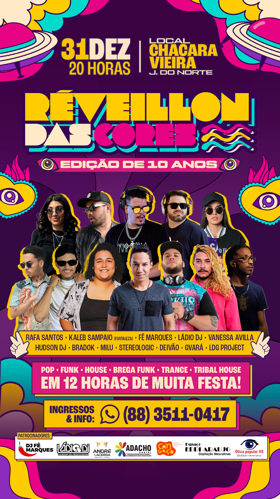 Sou idealizador e produtor do Réveillon das Cores, projeto criado em 2014 e consolidado como um dos principais eventos alternativos e inclusivos do interior do Ceará, além do Carnaval das Cores, que amplia essa proposta para o período carnavalesco. Desde 2014, atuo também como DJ residente da Parada da Diversidade LGBT do Crato, mantendo um compromisso contínuo com a representatividade, a visibilidade LGBTQIA+ e a ocupação dos espaços públicos por meio da arte. Meu trabalho busca conectar música eletrônica, cultura brasileira, identidade regional e diversidade, transformando cada apresentação em um espaço de encontro, celebração e pertencimento.