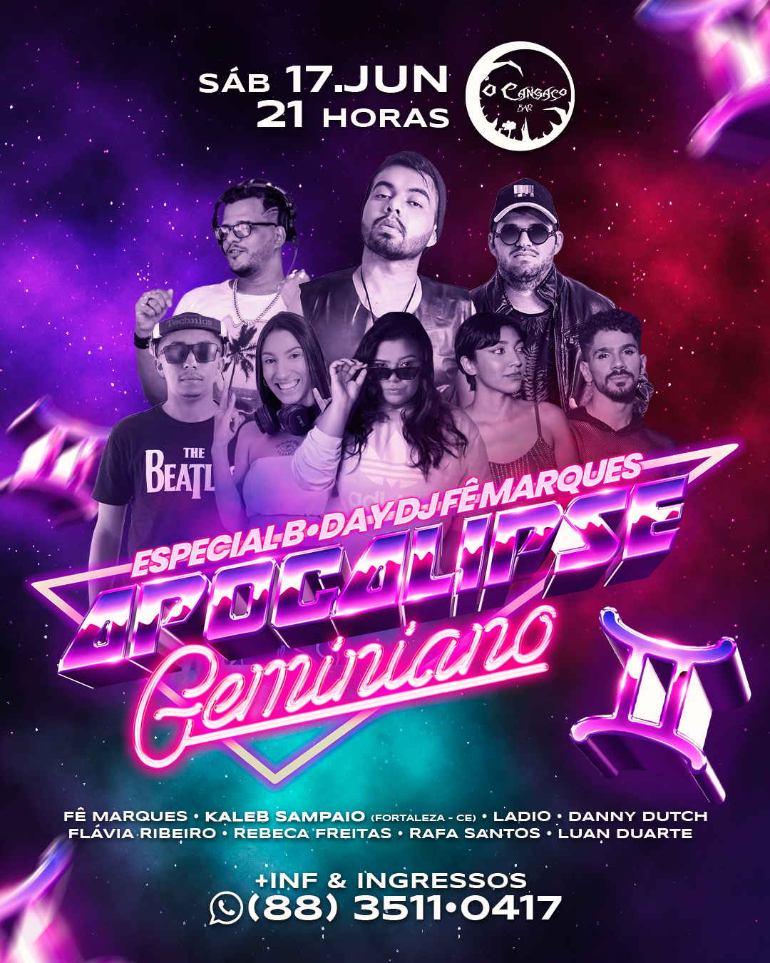 Sou produtor de eventos desde 2009 e DJ desde 2011, com atuação contínua no Cariri e uma trajetória construída a partir da ocupação cultural, da diversidade e da valorização da música como ferramenta de transformação social. Ao longo desses anos, desenvolvi um trabalho que une produção, curadoria artística e discotecagem, criando experiências que dialogam com diferentes públicos, territórios e contextos culturais. Minha formação prática vem da vivência direta em festas populares, eventos institucionais, projetos independentes e grandes produções, sempre com atenção à identidade, ao conceito e à experiência coletiva.Como DJ, tenho no Tribal House minha principal vertente artística, explorando sua potência rítmica em diálogo com a música brasileira, referências regionais e elementos da cultura pop. Também atuo como DJ Open Format, o que me permite transitar com naturalidade por aniversários, casamentos, eventos corporativos, desfiles, festivais e ações de marcas, mantendo identidade própria e mixagens ao vivo com equipamento profissional. Essa versatilidade é resultado de anos de pista, pesquisa musical e leitura de público.
