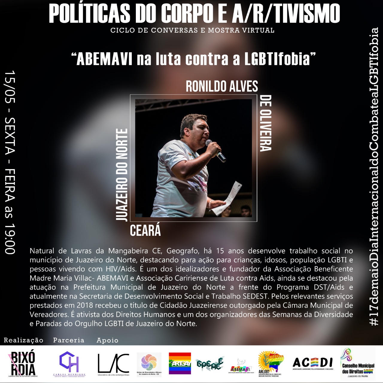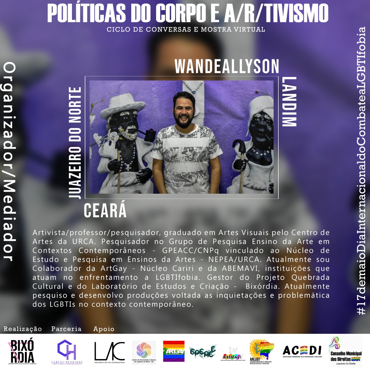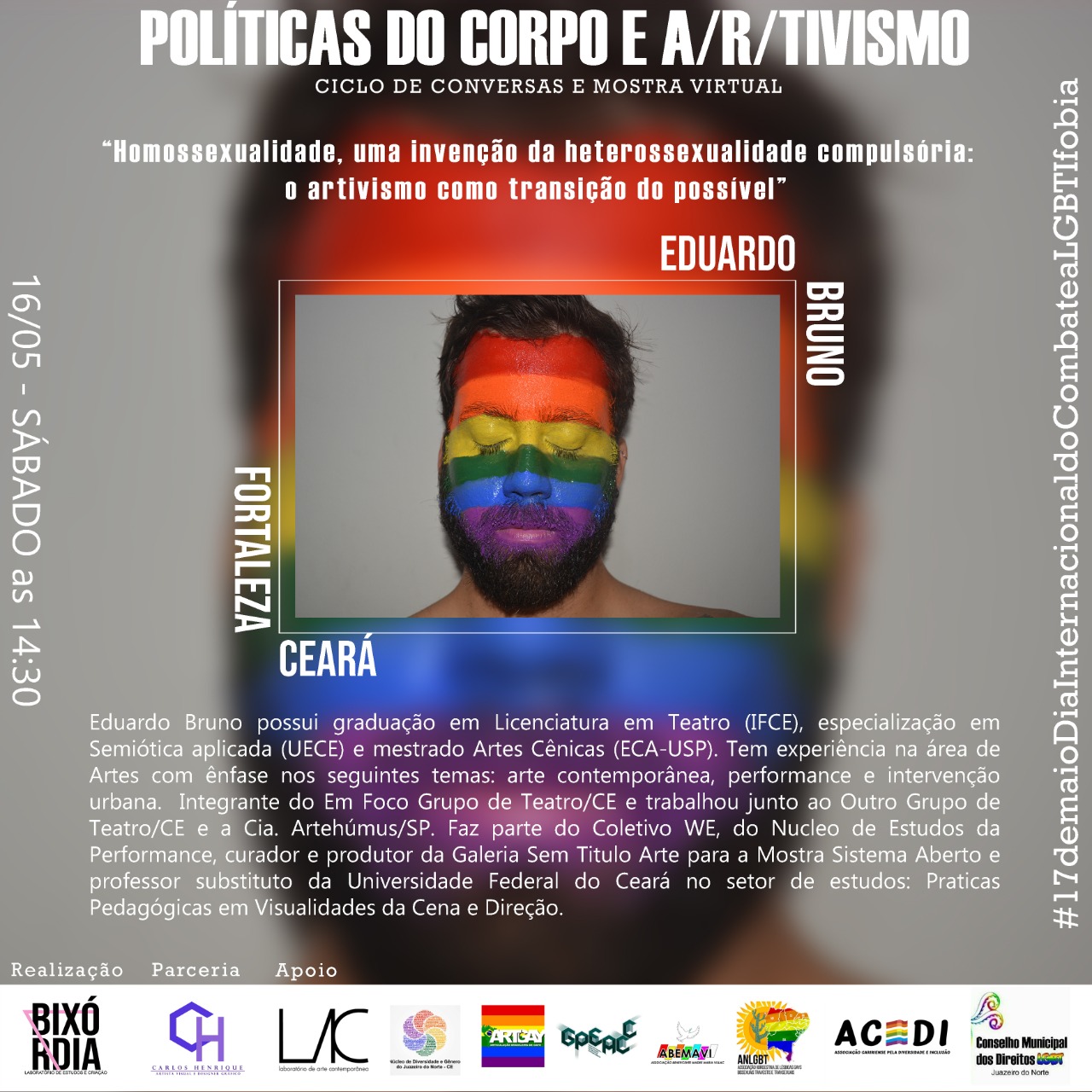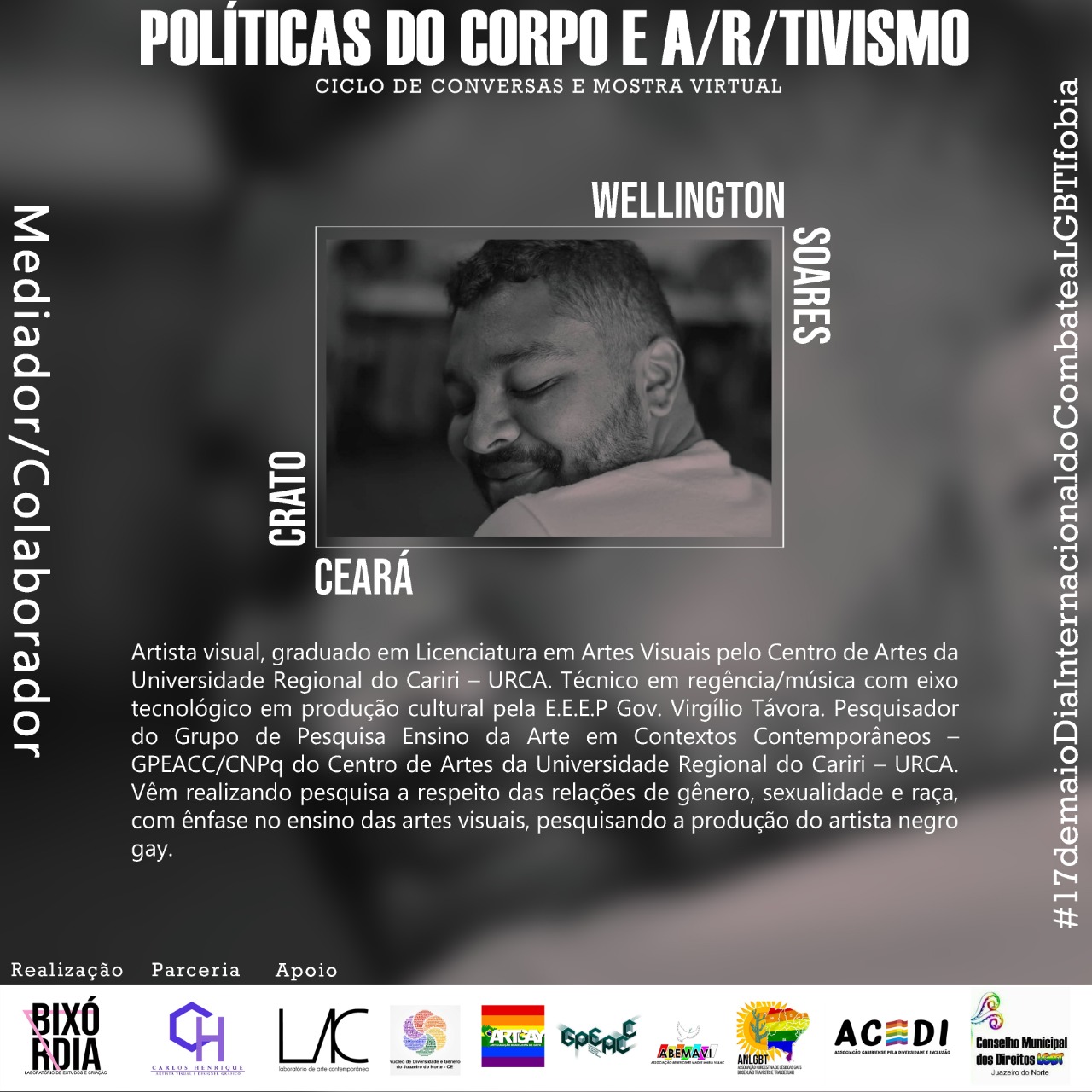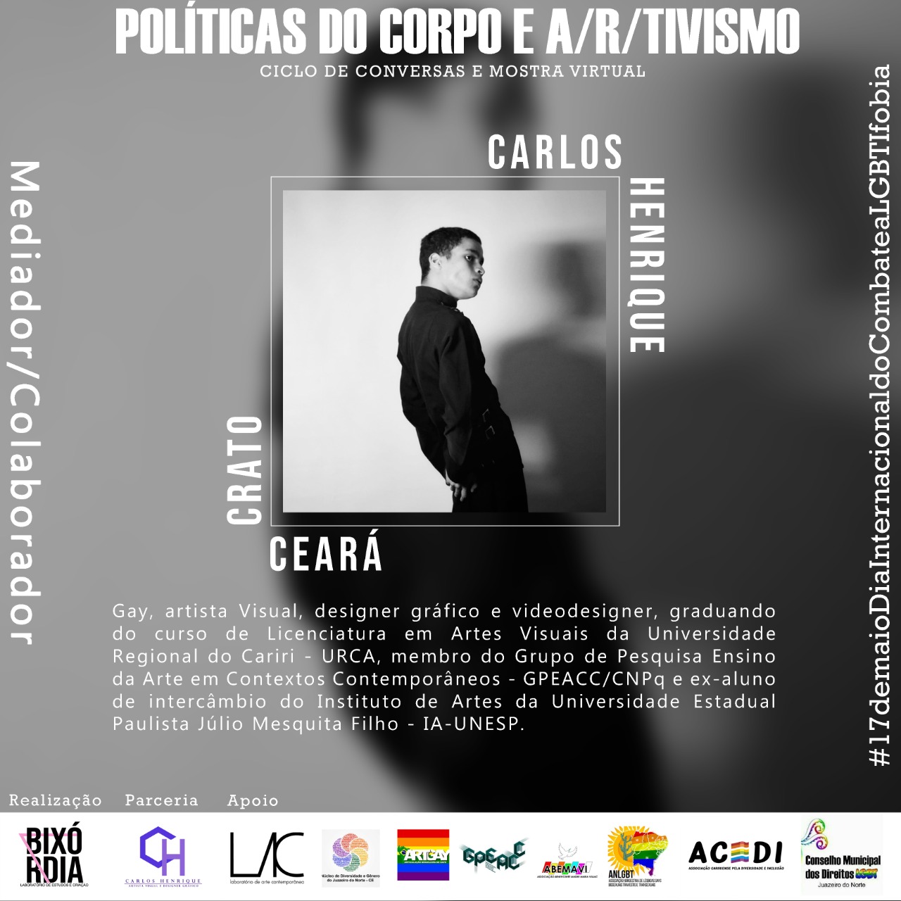 O Laboratório de Estudos e Criação - BIXÓRDIA surgiu a partir de uma atividade realizada na Semana de Acolhimento Estudantil no semestre 2018.2, no Centro de Artes Reitora Maria Violeta Arraes de Alencar Gervaiseau - URCA, realizada pelos Centros Acadêmicos de Artes Visuais e Teatro, onde nasceu a oficina intitulada “Bixórdia – Tudo é sério nada é triste”. A proposta surgiu a partir de tensões e questionamentos da invisibilidade de práticas artísticas LGBTIs ao longo da História da Arte. A partir da escuta e compartilhamento de experiências enquanto bixa (gay) e com as vivências cotidianas com Lésbicas, Gays, Travestis, Transexuais, Intersexuais (LGBTI), mulheres, negros/as onde pudemos ouvir e ver outras possibilidades de discursos, narrativas e estratégias, buscando por meio da oficina repensar e reelaborar as imagens que nos cerca no cotidiano (revistas, jornais, posters, site, tv, etc.), possibilitando uma reflexão-crítica por meio de outras imagens construídas através de colagens. Então, a partir desta oficina deu-se origem ao Laboratório Bixórdia, como um espaço de formação estético-artística, de produção e gestão cultural autônoma.Vídeos