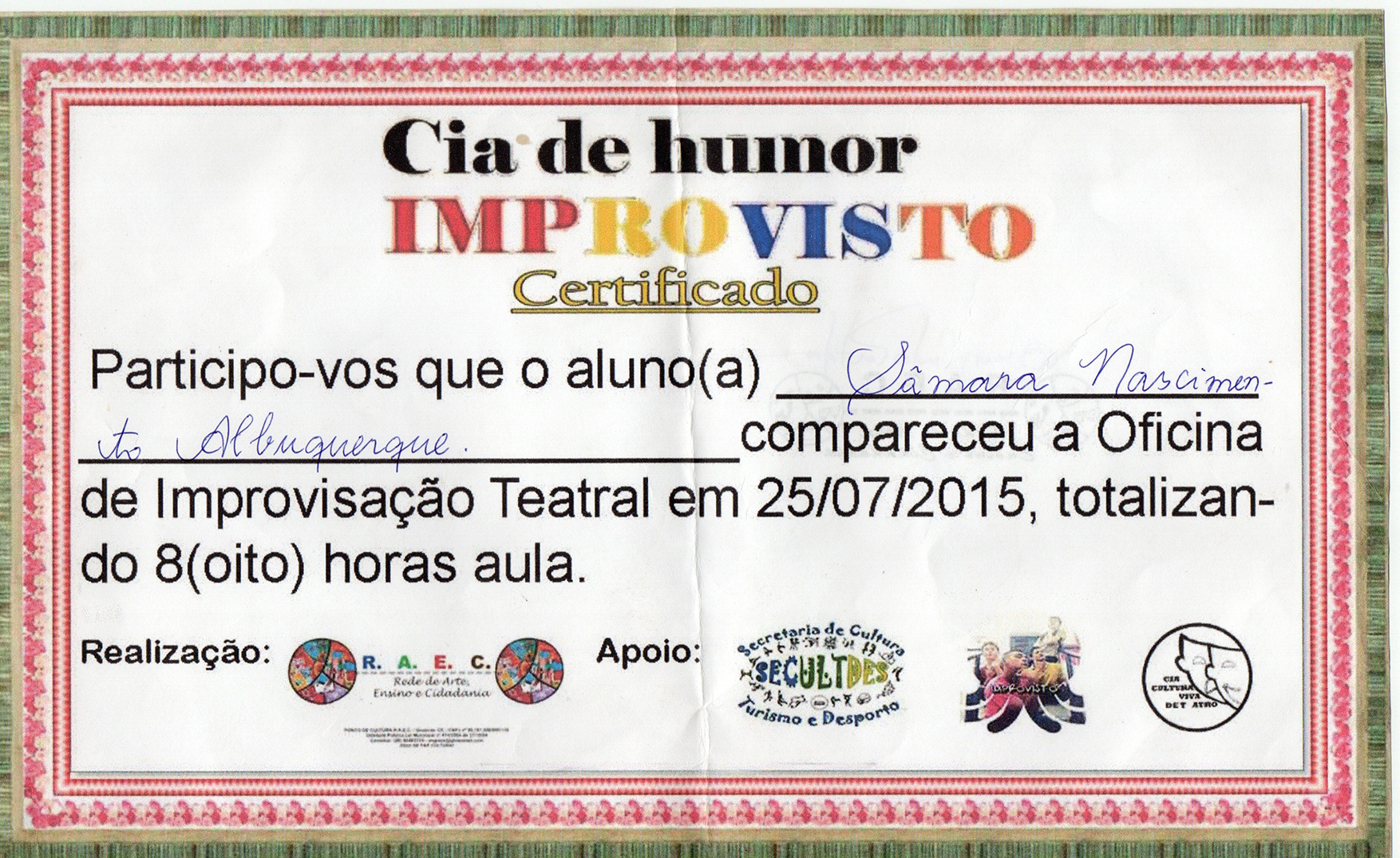 Nov/2019- Apresentação de Halloween- Atriz- Local Itamaracá – Cia. Cultura Viva de Teatro e SATDS (Secretaria de Assistência, Trabalho e Desenvolvimento Social)