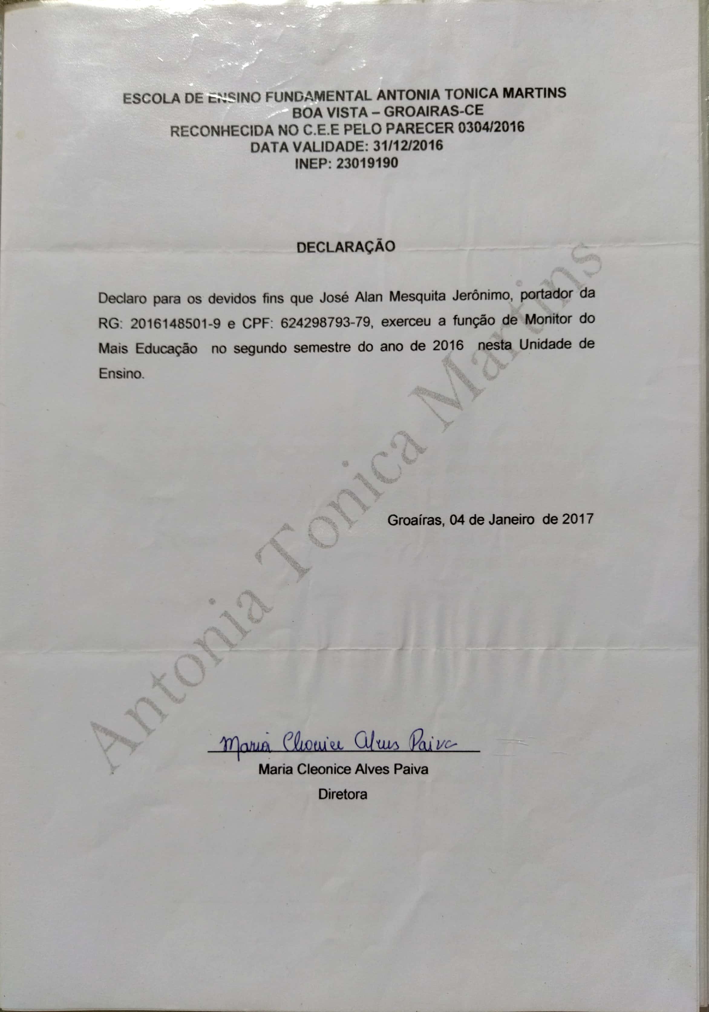 Endereço: Rua Professor Malaquias, 1450, Casa, Centro, 62190-000, Groaíras, CE