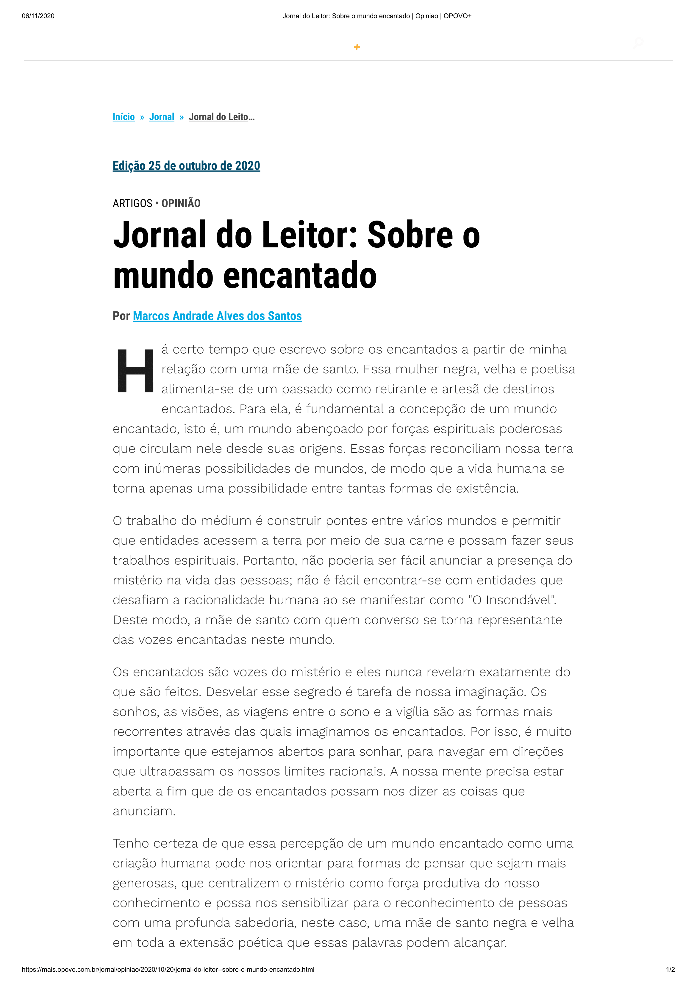 Coordeno o Projeto Literário A Mística dos Encantados, tecido a partir das experiências da minha avó, Mestra Maria Toinha, como mulher negra e mãe de santo Umbandista.