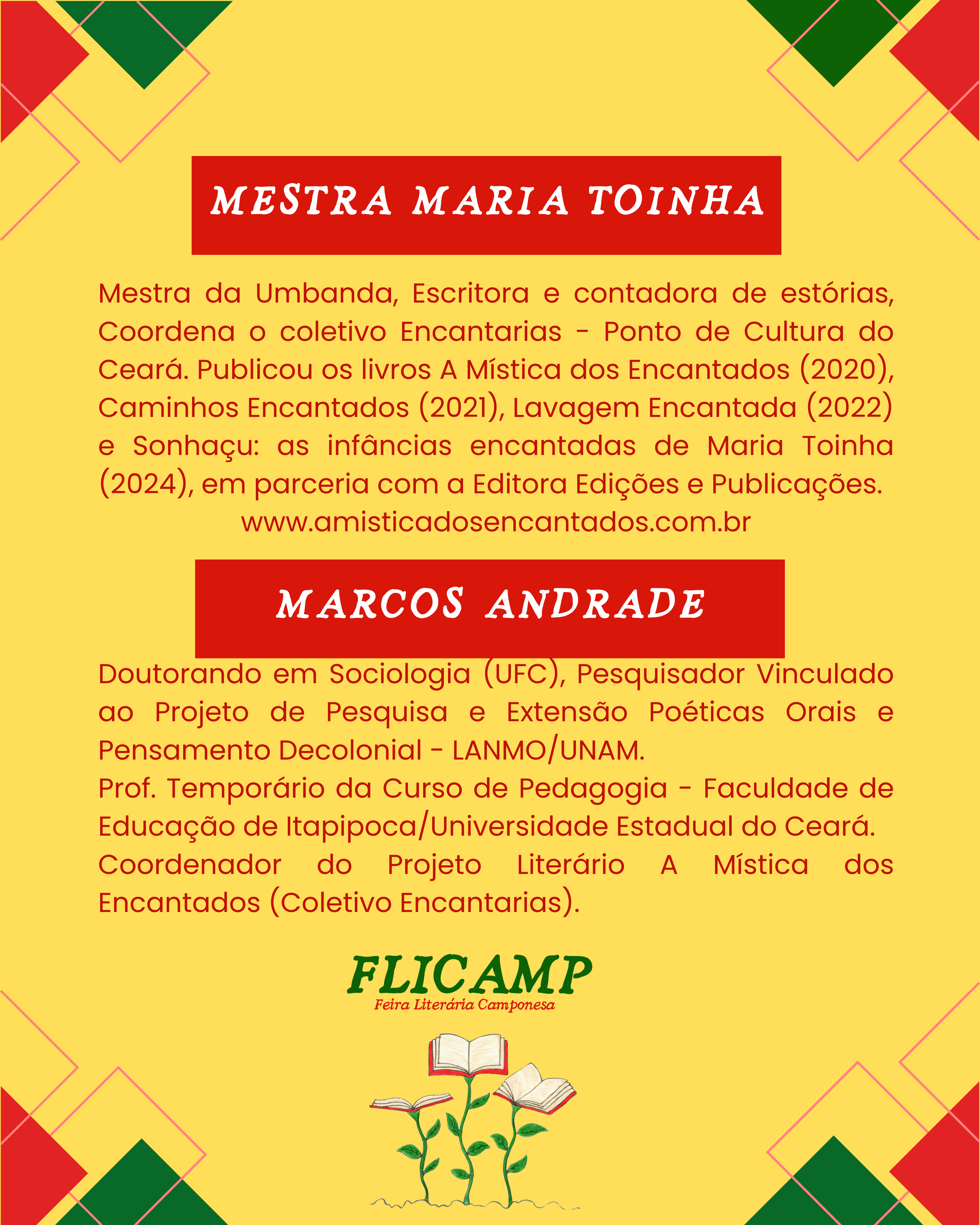 Publiquei os Livros A Mística dos Encantados (2020), Caminhos Encantados (2021), Lavagem Encantada (2022) e Sonhaçu: as infâncias encantadas de Maria Toinha, pela Editora Edições e Publicações, em coautoria com Mestra Maria Toinha.