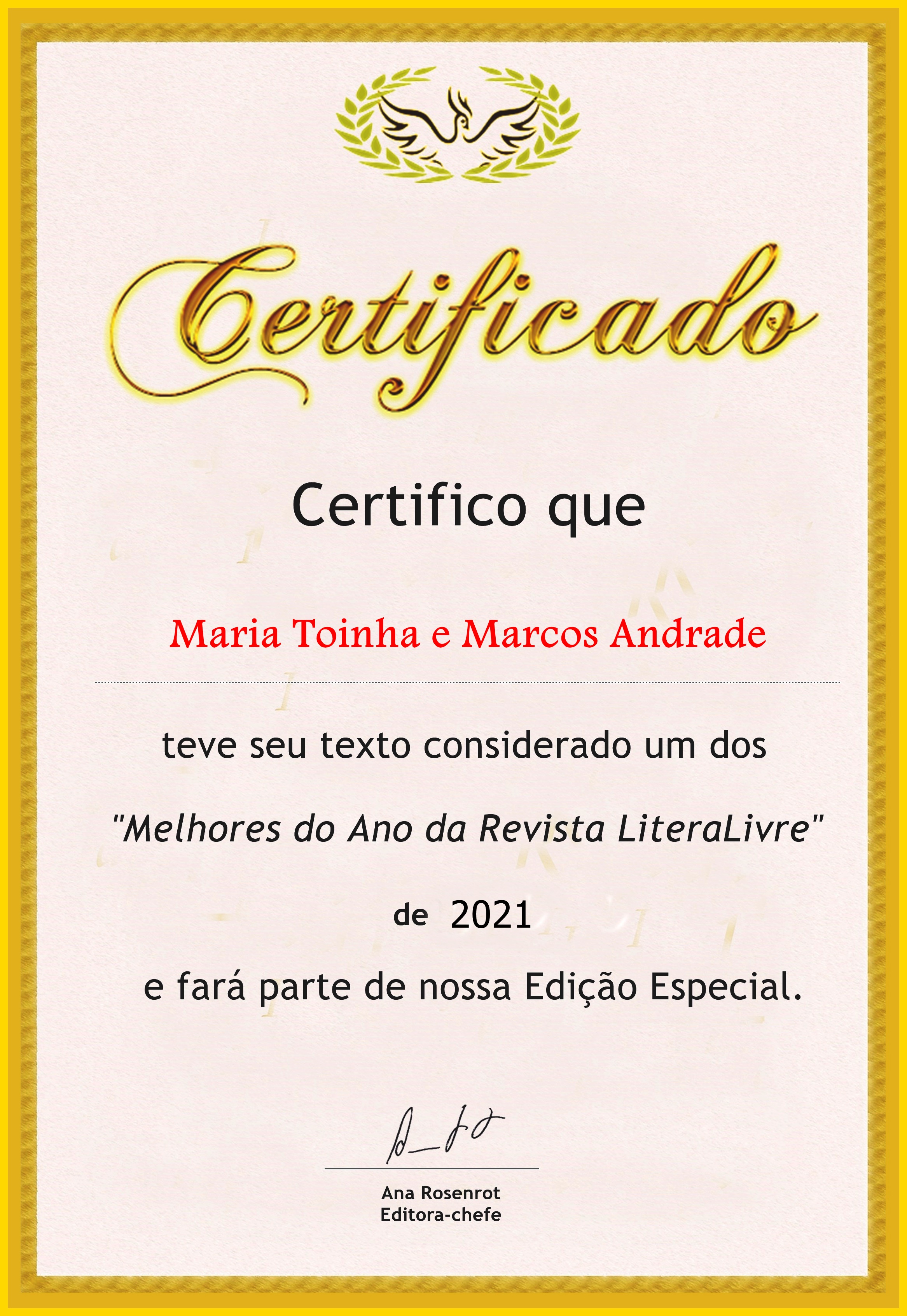 Participei dos projetos editoriais, como Antologias e Coletâneas Literárias de Editora no Brasil e no Exterior. Publiquei contos, poesias, artigos e ensaios em diferentes Revistas e periódicos especializados em literatura, crítica literária, cultura e arte.