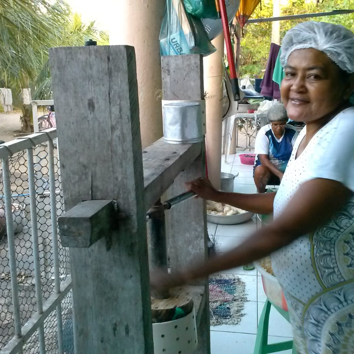 oficinas da prática da culinária indígena Tapeba, aulas de como fazer bolos, beiju, tapioca, canjica, pamonha, entre outras comidas típicas do Povo Tapeba.