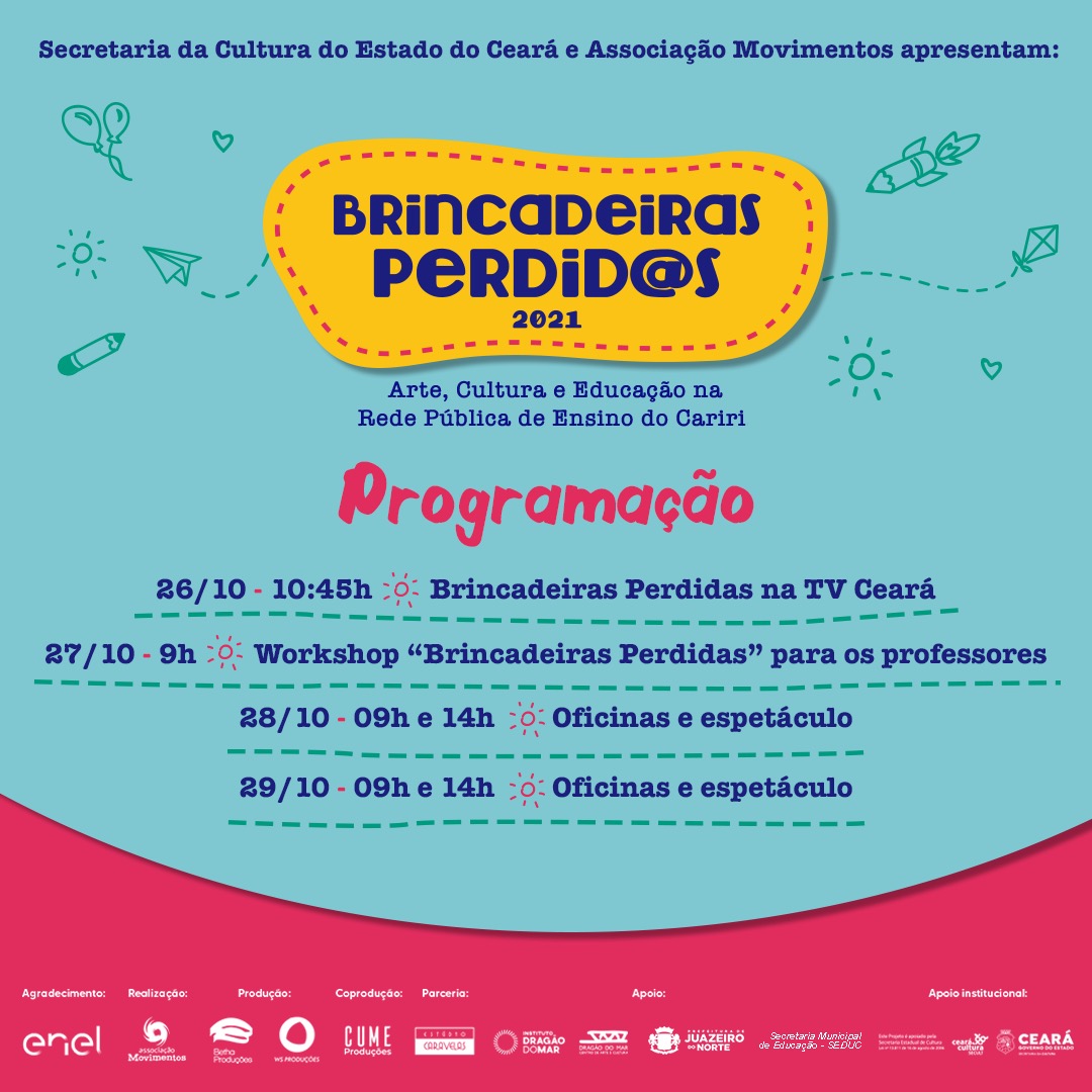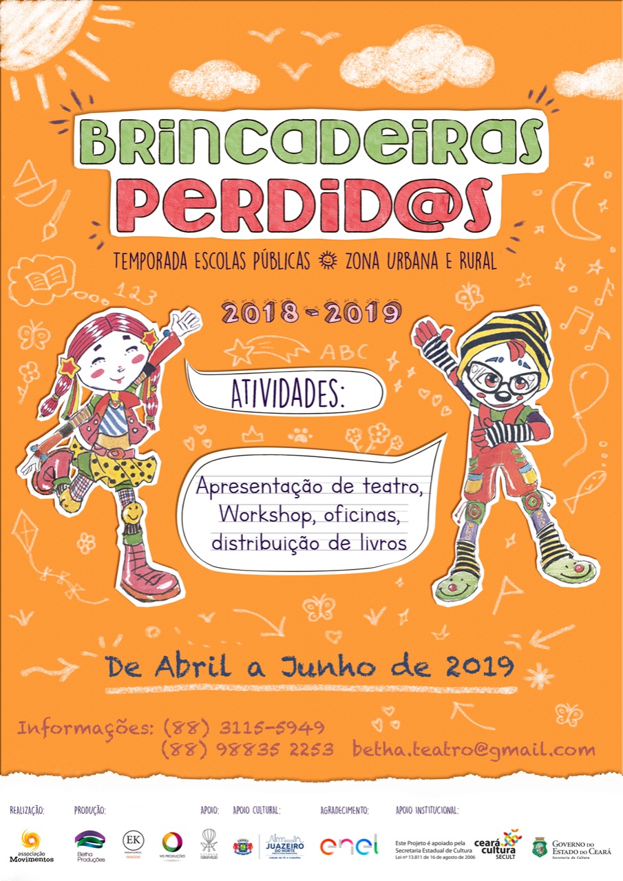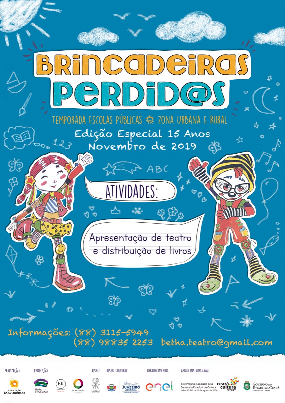 Coordenadora geral do projeto de arte-educação, BRINCADEIRAS PERDIDAS – TEMPORADA ESCOLAS PÚBLICAS durante 18 anos. Em 2016 conquista o apoio da empresa enel, via Mecenas do estado do Ceará para realização com escolas da cidade de Juazeiro do Norte no Cariri. Em 17 anos atendeu mais de 50 mil crianças da rede publica de ensino. A parceria com a enel e SECULT CE se mantem há 6 anos.