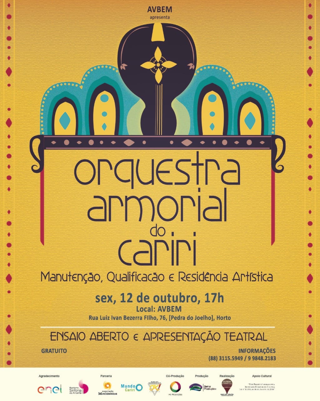 Coordenadora do projeto de manutenção da ORQUESTRA ARMORIAL DO CARIRI – MANUTENÇÃO E FORMAÇÃO. Orquestra composta por jovens, adultos e Mestres e Mestras do reisado do cariri. Há quatro anos vem em parceira com a empresa enel via mecenato do estado do Ceará 2018 a 2022.