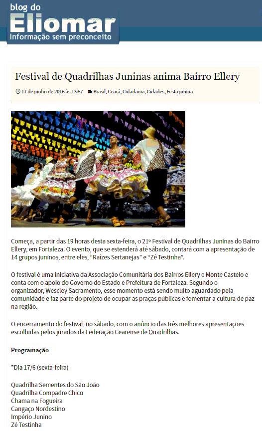 - Promotor do Festival de Quadrilhas Juninas do Bairro Ellery;