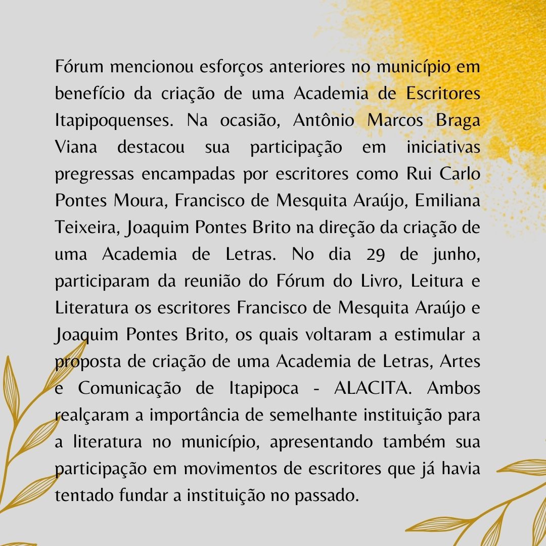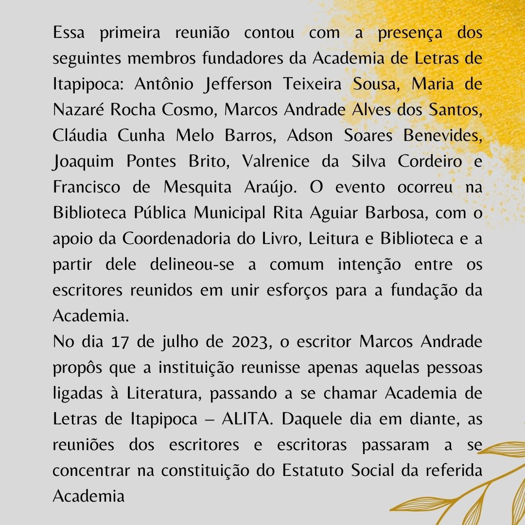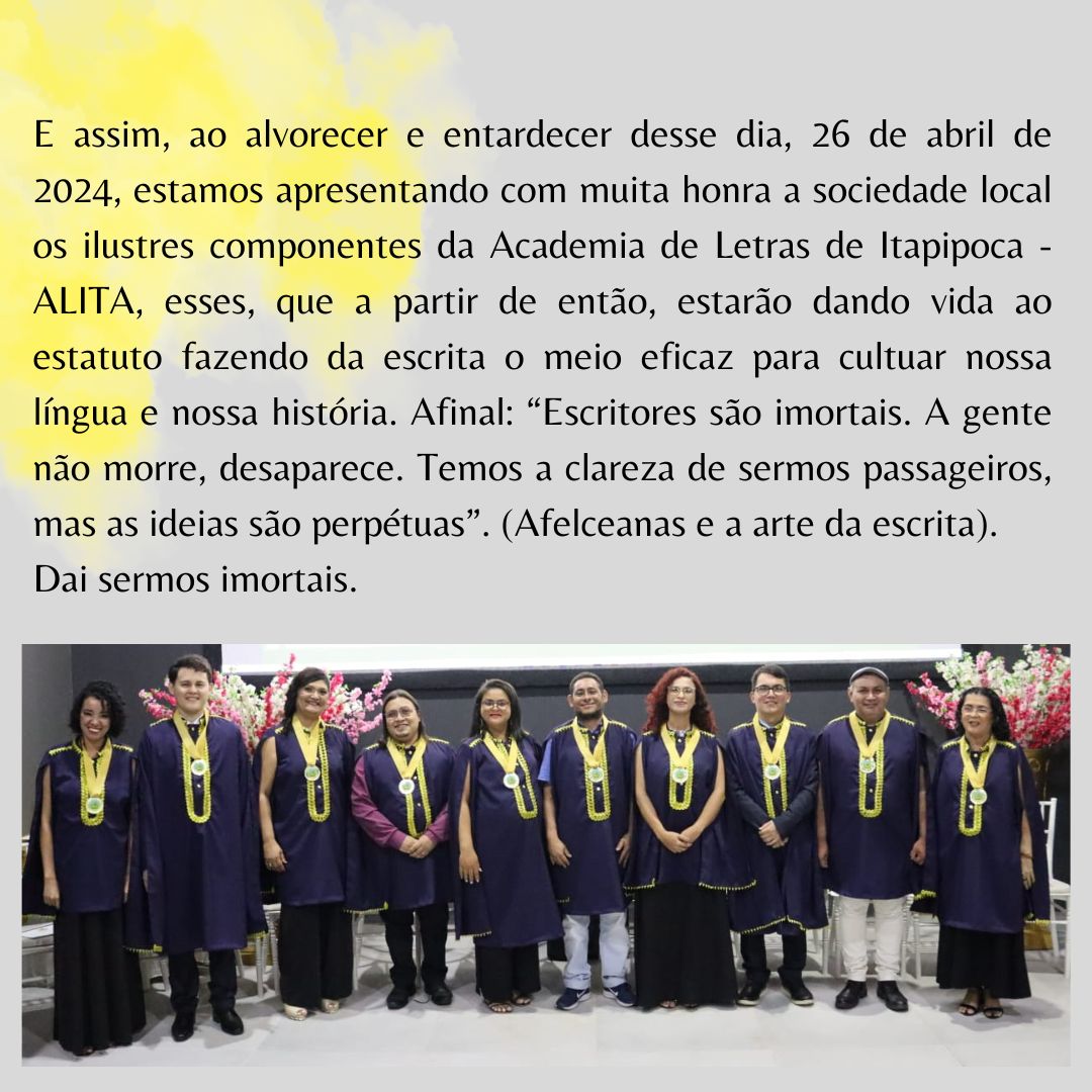 A Academia de Letras de Itapipoca foi constituída tendo os seguintes objetivos como premissas em seu Estatuto Social: I) Incentivar a cultura em geral e a literária em particular nas modalidades erudita e popular; II) Realizar e/ou participar de reuniões, encontros, seminários, simpósios, palestras, conferências e congressos, com o envolvimento de cultores das letras, para discussão de problemas e questões de interesse cultural, linguístico ou literário; III) Promover o aprimoramento da língua pátria e a elevação da dignidade do escritor brasileiro; IV) Estimular o intercâmbio cultural entre os membros da Academia e entre as entidades congêneres. As áreas específicas de atuação da ALITA correspondem a: I) Literatura; II) Cultura; III) Educação; IV) Arte.