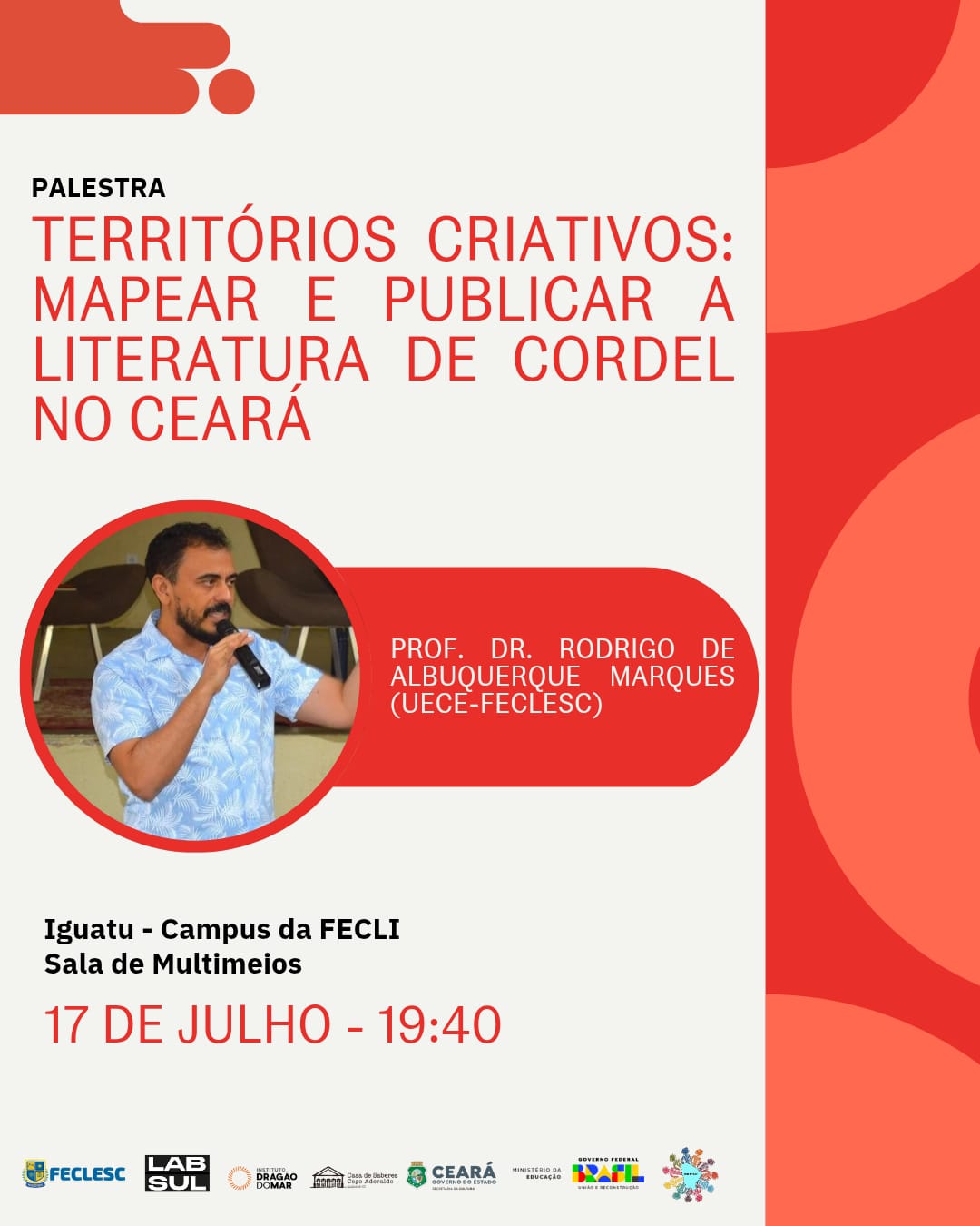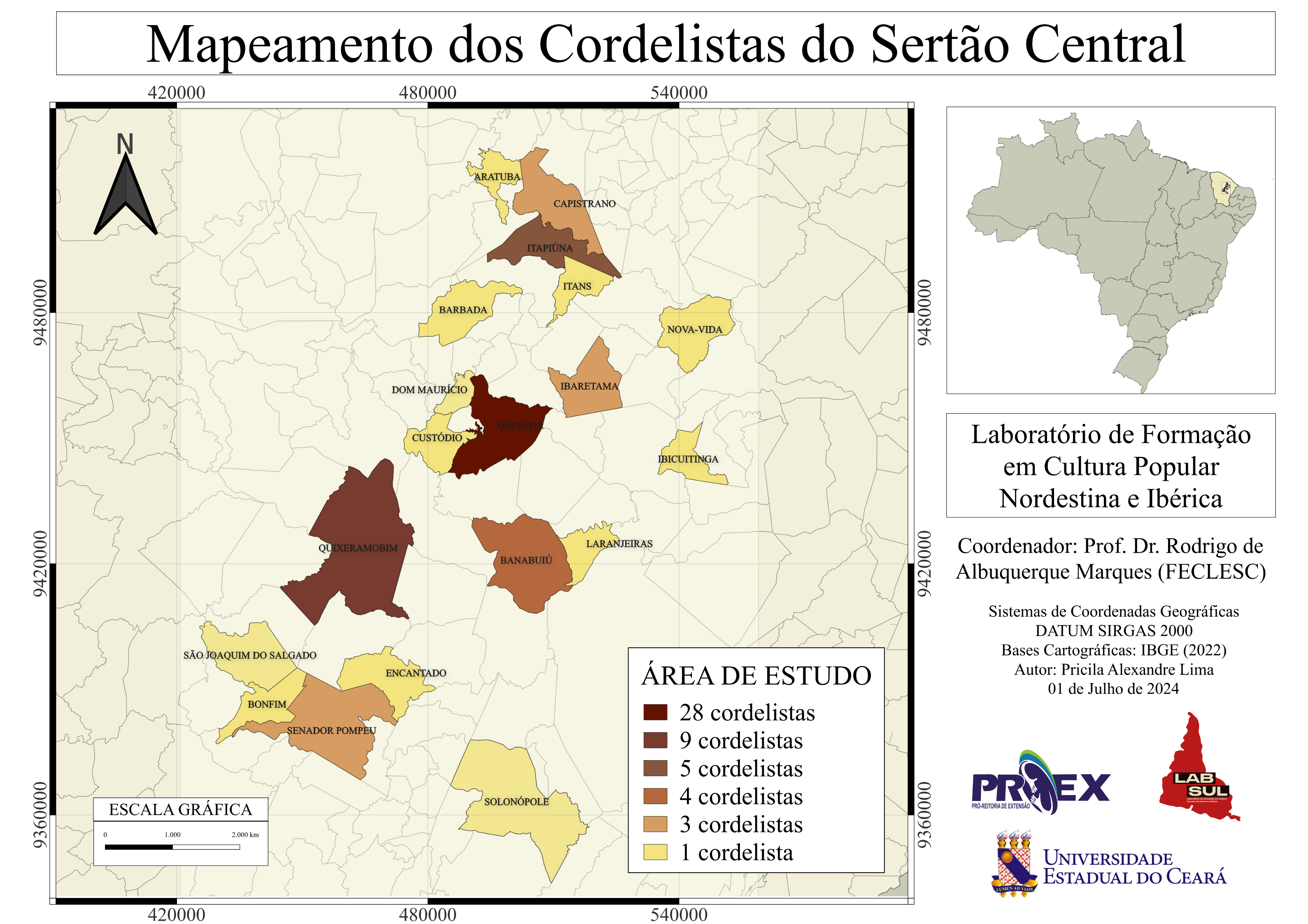Entre os projetos em andamento, o LABSUL lidera uma pesquisa inovadora que mapeia a produção contemporânea de cordelistas nas regiões do Sertão Central e Cariri Centro-Sul.