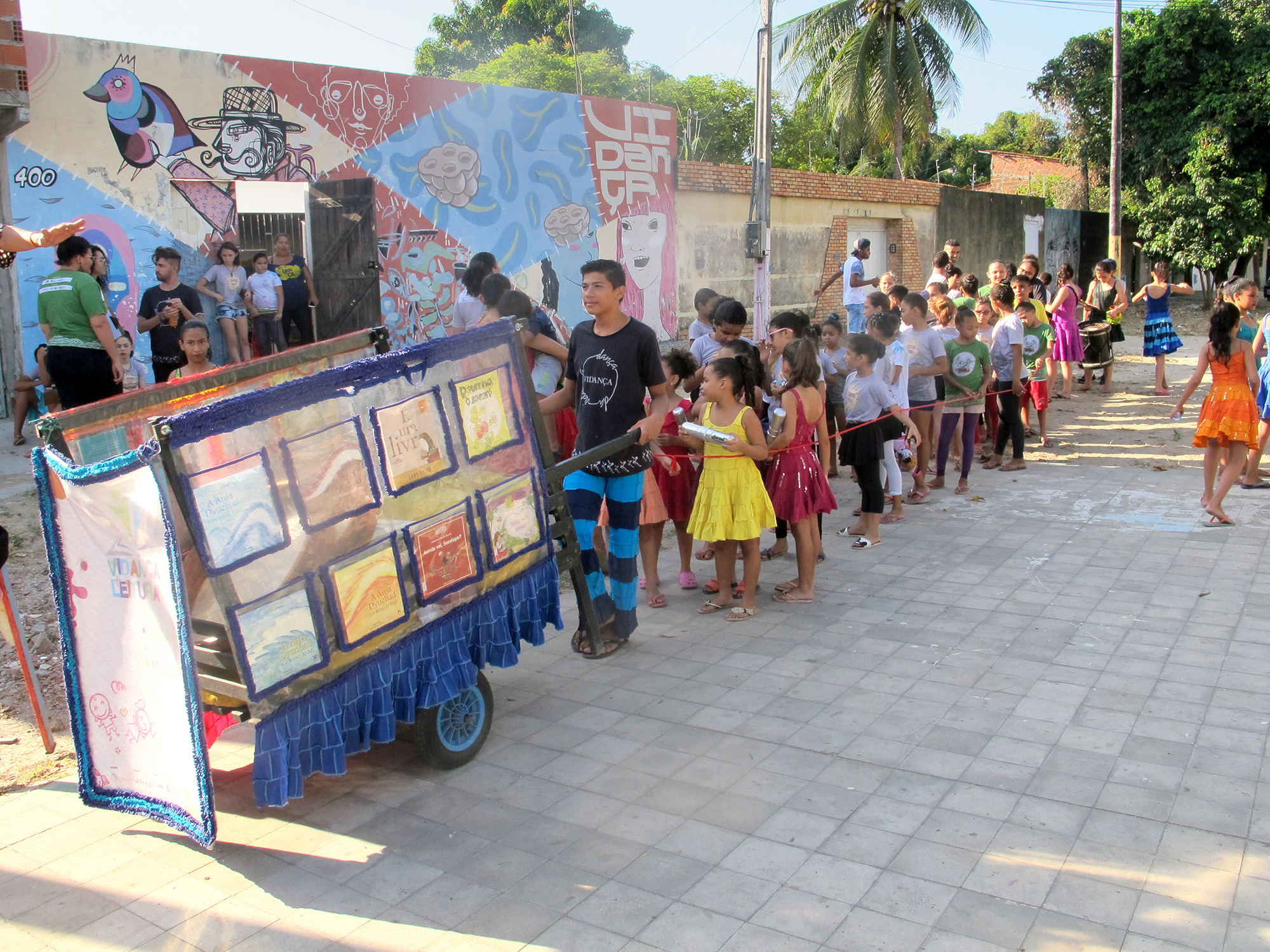 O Cortejo Literário ocorre nesta quinta-feira, 25/09, percorrendo as ruas do bairro Vila Velha. A celebração inicia-se na sede do Vidança, às 15:30h e segue até a Escola Municipal Herondina Lima Cavalcante. Além de contar com apresentação do “Tambatuque DasMarias” e participação e participação do “Tambatuque do Vidança”.