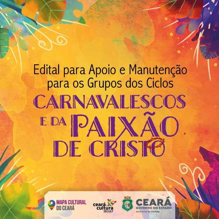 O Edital para Apoio e Manutenção dos Grupos dos Ciclos Carnavalesco e Paixão de Cristo é uma ação da política de Patrimônio Cultural para o fomento de bens, produtos e serviços relacionados às manifestações populares do Ciclo Carnavalesco e Paixão de Cristo das várias regiões do Estado do Ceará. O Edital tem uma função social e econômica no fomento à economia artística, criativa e cultural, considerando o grau elevado de informalidade do setor e dos trabalhadores da cultura, assumindo um papel na permanência de atividades culturais promovidas pelos atores e fazedores artísticos em nosso Estado.