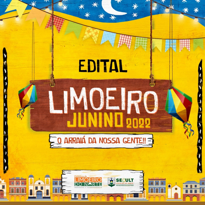 A Secretaria Municipal de Cultura e Turismo de Limoeiro do Norte , por meio do Secretário da Cultura e Turismo, no uso de suas atribuições legais, torna público o processo de inscrição e seleção pública que regulamenta o Edital Limoeiro Junino 2022.