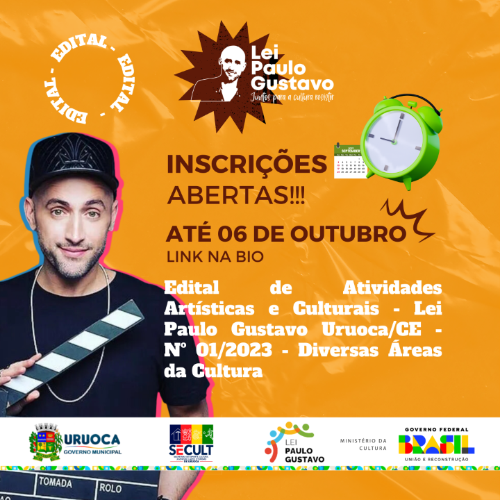 EDITAL DE ATIVIDADES ARTÍSTICAS E CULTURAIS - LEI PAULO GUSTAVO URUOCA/CE - Nº 01/2023 - DIVERSAS ÁREAS DA CULTURA