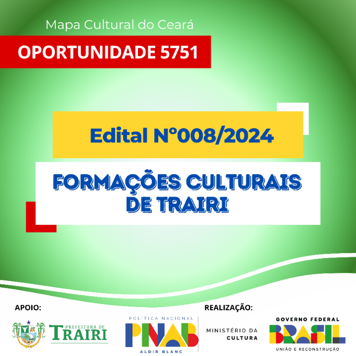 EDITAL DE CHAMAMENTO PÚBLICO Nº 008/2024 – FORMAÇÕES CULTURAIS EM TRAIRI PNAB 2024