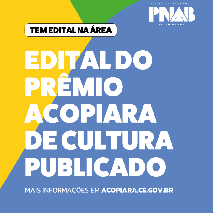 A Secretaria da Cultura, Esporte, Juventude e Turismo de Acopiara - CE lança o PRÊMIO ACOPIARA DE CULTURA, premiação de agentes culturais residentes em Acopiara - CE, que tenham prestado relevante contribuição ao desenvolvimento artístico ou cultural do Município de Acopiara. Trata-se, portanto, de reconhecimento pela contribuição já realizada pelo agente cultural deste município através da Política Naciona Aldir Blanc - PNAB.