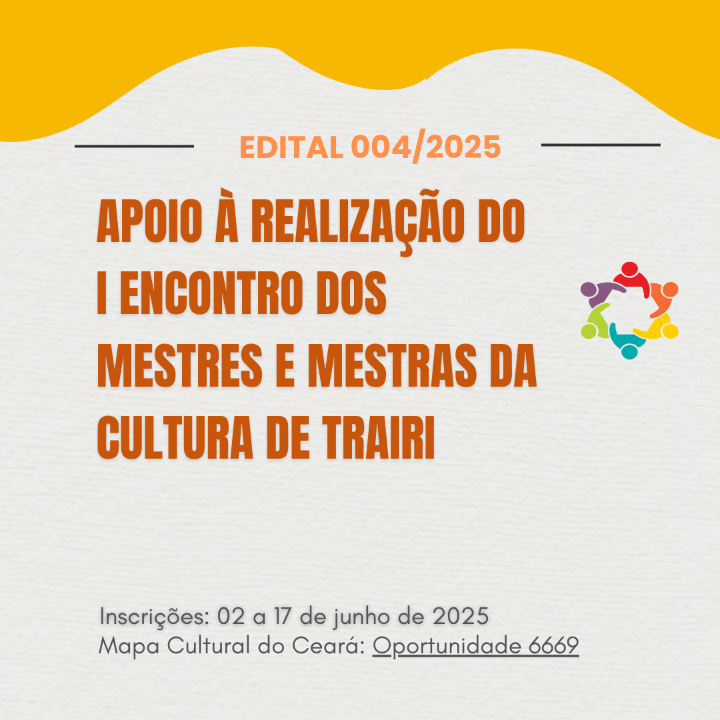 EDITAL DE CHAMAMENTO PÚBLICO Nº 004/2025 - APOIO À REALIZAÇÃO DO I ENCONTRO DOS MESTRES E MESTRAS DA CULTURA DE TRAIRI