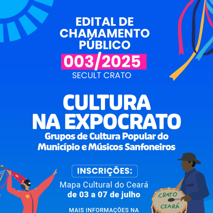 EDITAL DE SELEÇÃO PÚBLICA 003/2025 SELEÇÃO DE ARTISTAS E GRUPOS DE TRADIÇÃO DO MUNICÍPIO DO CRATO – PROJETO CULTURA NA EXPOCRATO