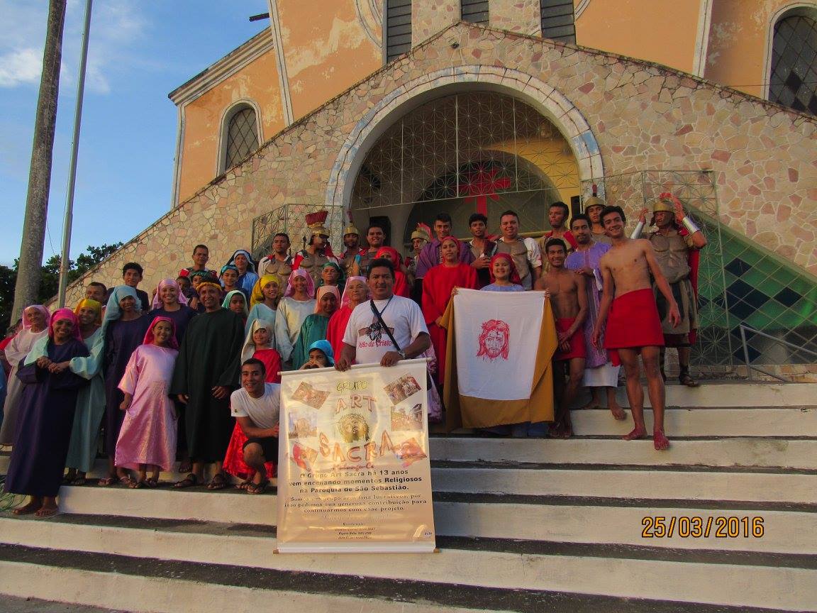 ART SACRA - 14 ANOS DE TRADIÇÃONossa história começa em Mulungu há 14 anos com a chegada do Vigário Padre Raimundo, conhecido como Padre Toinho, que, através da evangelização incentivava a juventude a ser protagonista do seu tempo, com a proximidade do período de Quaresma, começou a preparar a Semana Santa, período do qual acontece a Paixão de Cristo, as reuniões aconteciam toda semana e em uma dessas reuniões surgiu à ideia de dramatizarmos a peregrinação mais famosa da historia da Humanidade e que até hoje é reproduzida por diversas civilizações em diversas línguas e linguagens diferentes, surge ai, o grupo de Teatro de Rua ART SACRA com a dramatização da Paixão de Cristo.